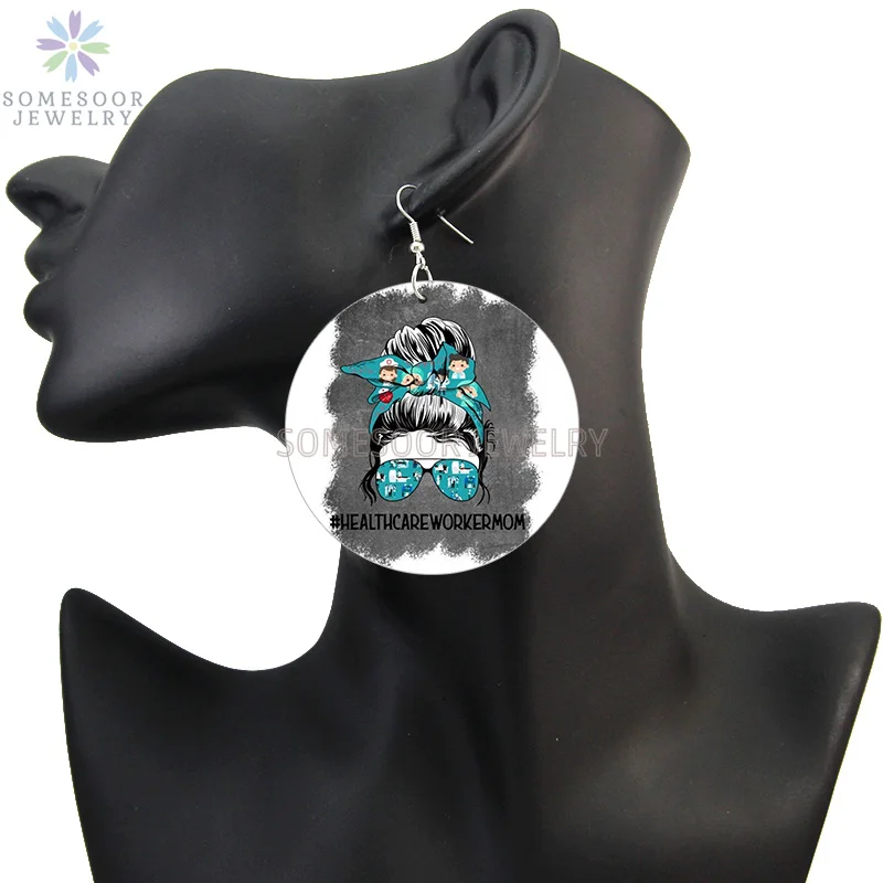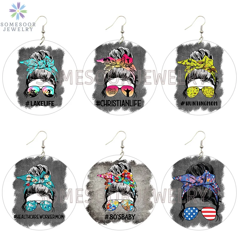 SOMESOOR афро-американские висячие серьги в форме головы деревянные висячие серьги мама ребенок кристианская жизнь надпись Висячие петли с принтом подарок для женщин