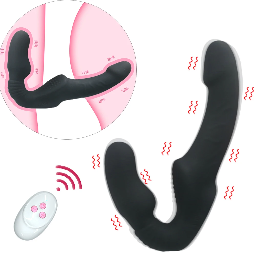 Фаллоимитатор без бретелек, двусторонний, с пультом дистанционного ...