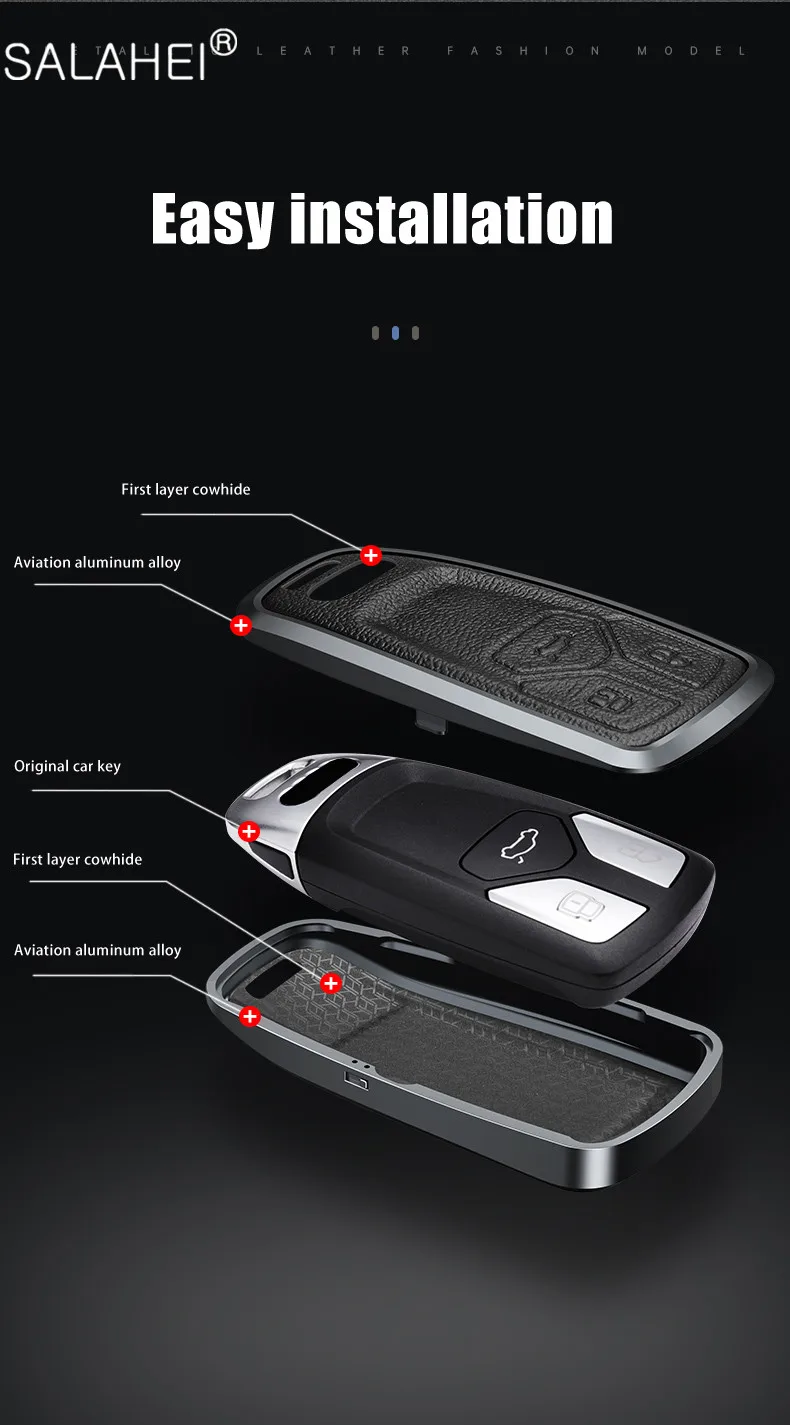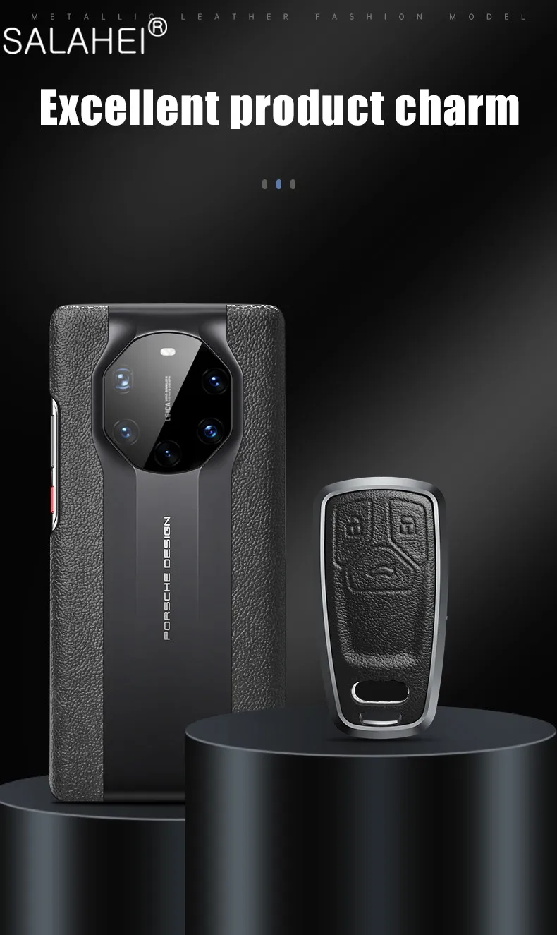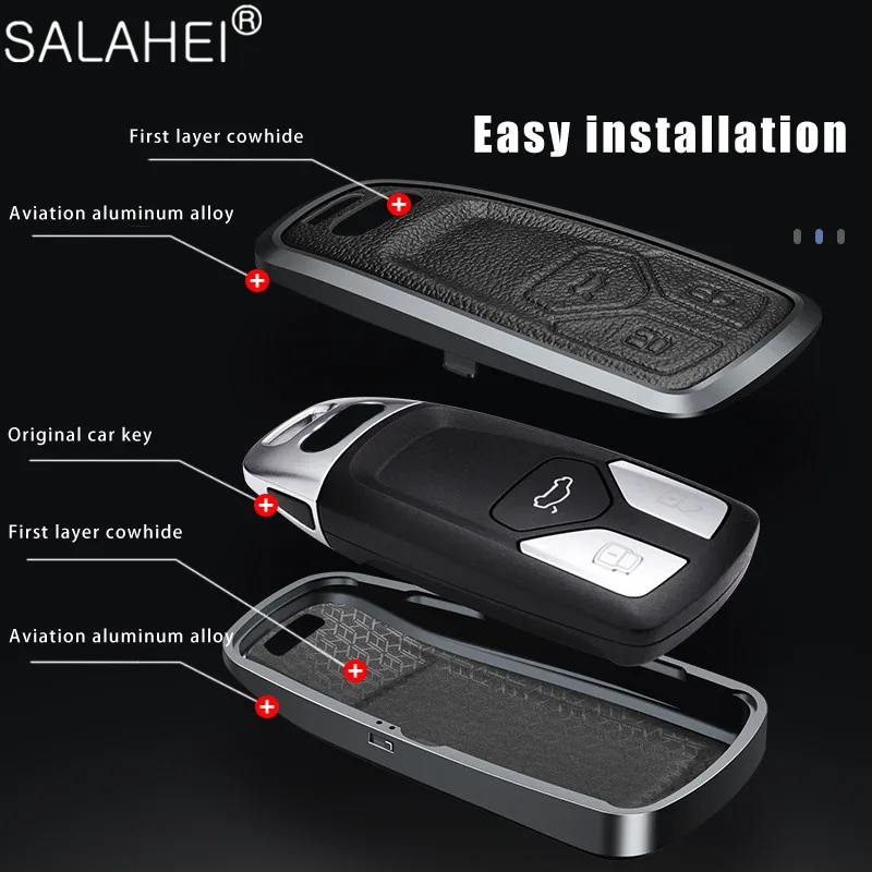 Чехол для автомобильного ключа из алюминиевого сплава и кожи, чехол...