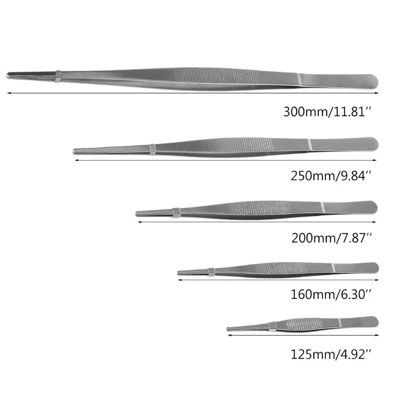 Зубчатый Пинцет для барбекю из нержавеющей стали, длинные Щипцы для еды, прямой Домашний медицинский пинцет, садовый кухонный инструмент для барбекю, 5 размеров