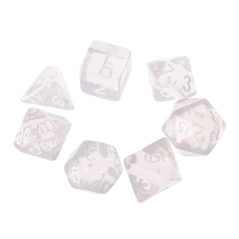 7 шт.компл. прозрачные белые кубики D4 D6 D8 D10 D12 D20, Набор куб...