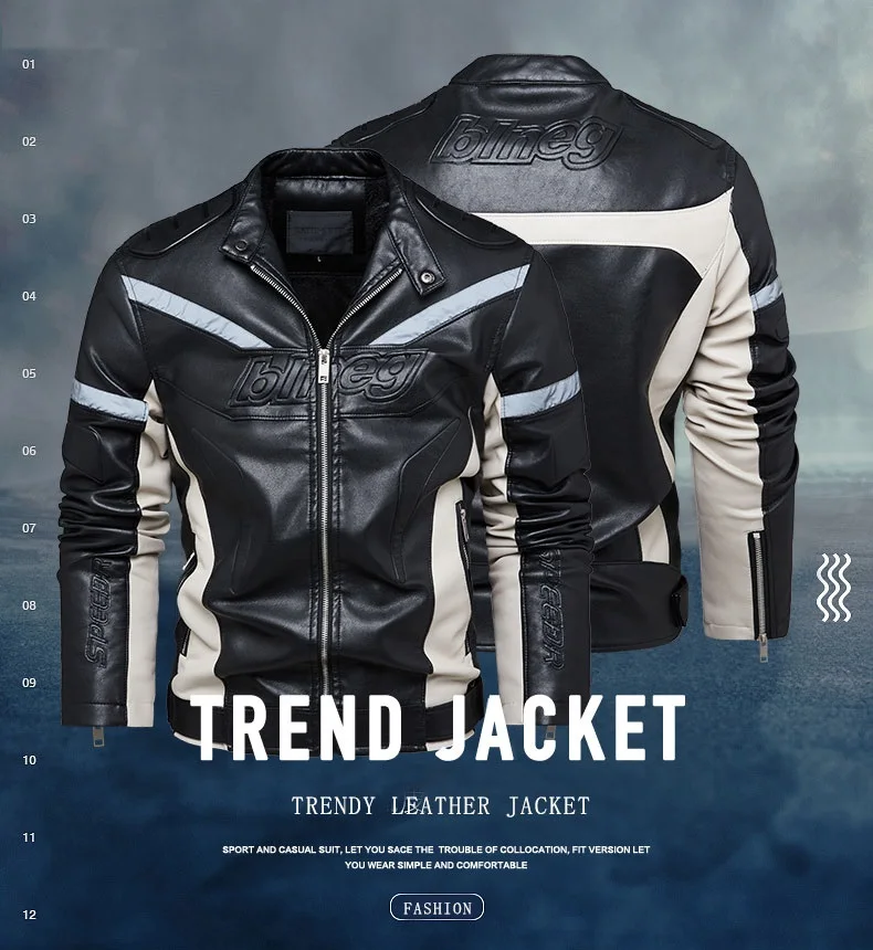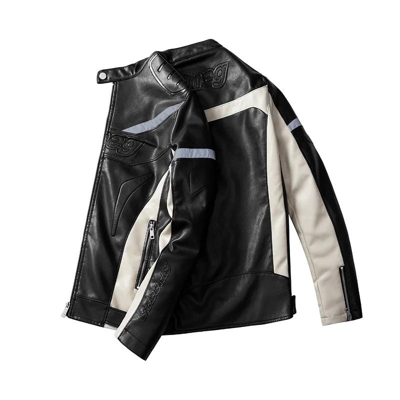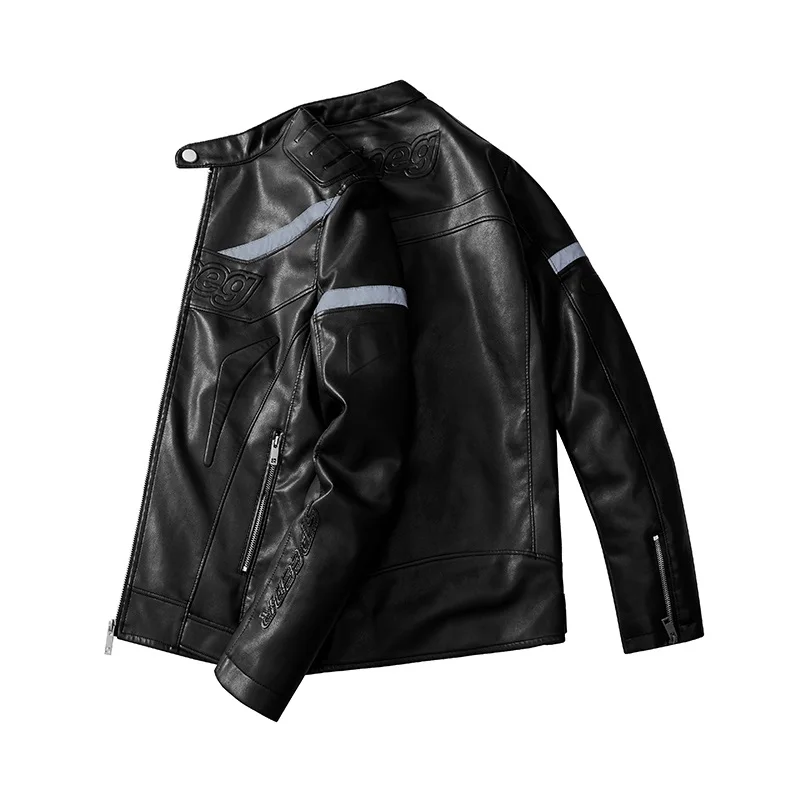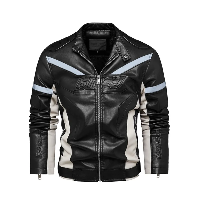 Зимняя мужская кожаная мотоциклетная куртка, новая модная Лоскутная светоотражающая полоска, мужские куртки на молнии, верхняя одежда, пальто, ветровка