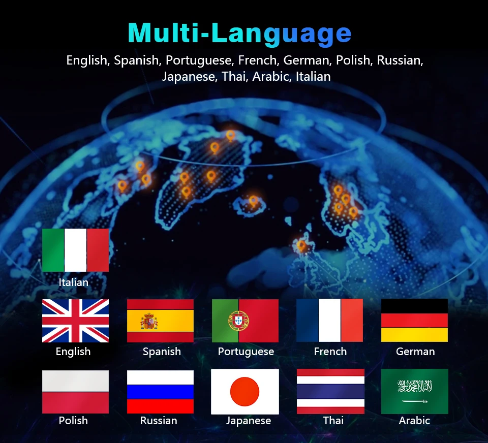 X100PAD2 может поддерживать множество языков, не беспокойтесь о том, что вы не можете понять английский язык, и он свободно переключаетсяПоддержка английского, испанский, французский, немецкий, итальянский, русский, финский, арабский, японский, корейский, польский, португальский, вьетнамский, упрощенный китайский и традиционный китайский...(Сообщите продавцу серийный номер вашего устройства в порядке)