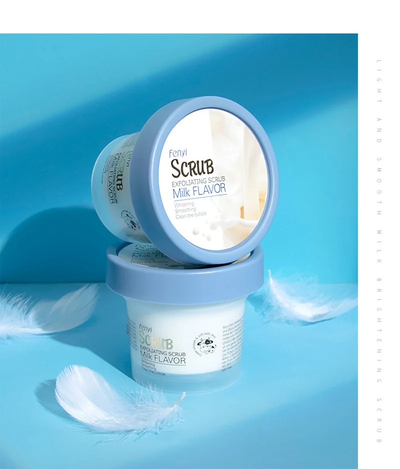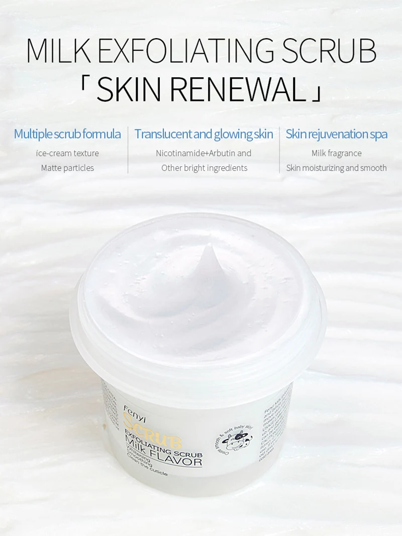 Название продукта: молочный очищающий скраб для телаОсновные ингредиенты: глицерин, никотинамид, аллантоин, арбутин, экстракт молока, бифид дрожжевой экстракт.Вес нетто: 100 гПодходит для: грубой, роговой кожи; Подходит для всех типов кожи.Эффективность: тонкие поры, увлажнение, мягкое Отшелушивание, мягкая кожаСпособ хранения: комнатная температура (не выше 38 ℃), герметичный и хранящийся, защищенный от светильник