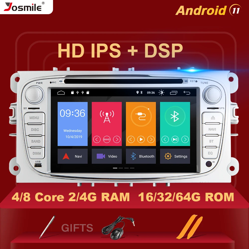 Автомагнитола 2 din, Android 11, для Ford Focus 2, Ford Mondeo 4, для DC-Max, S-Max, Kuga, Galaxy Transit, подключение, мультимедиа, GPS-навигация