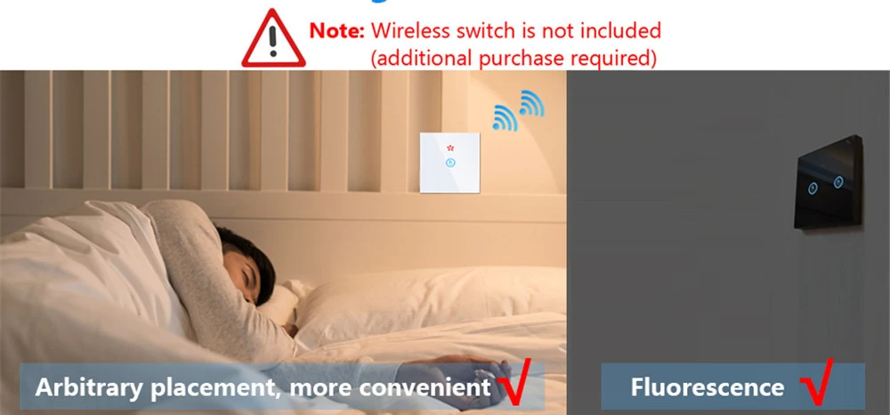 1. Более удобно использовать в ночное время и может быть размещен у кровати. Простой в использовании 2. Беспроводной переключатель имеет флуоресцентную функцию и легко найти беспроводной переключатель.