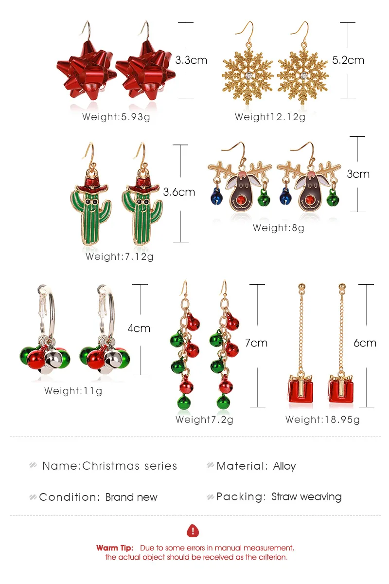8 шт.компл. рождественские серьги, набор украшений, милый Санта-Кла...