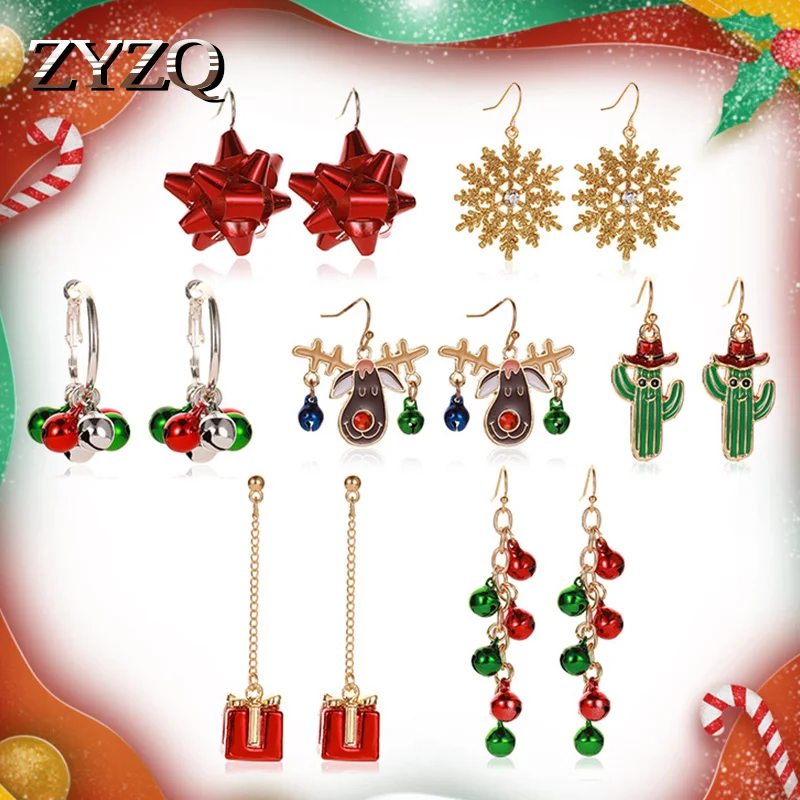 ZYZQ новый творческий мультфильм Комплект сережек для женщин Санта Клаус Лось колокольчики-серьги простой Рождественский подарок серьги ювелирные изделия