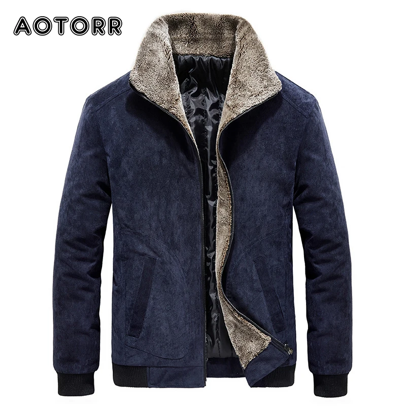 Зимняя мужская куртка-бомбер, повседневная мужская ветровка с мехов...