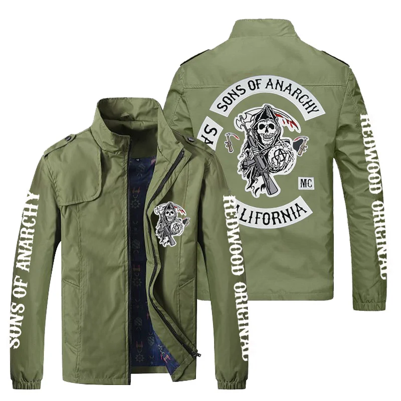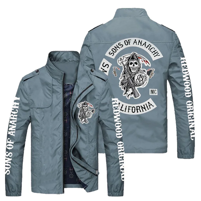 Мужская куртка SONS OF анархии с принтом логотипа, кардиган на молнии, куртки, модная облегающая Повседневная бейсбольная форма, байкерская куртка, верхняя одежда