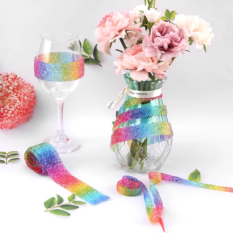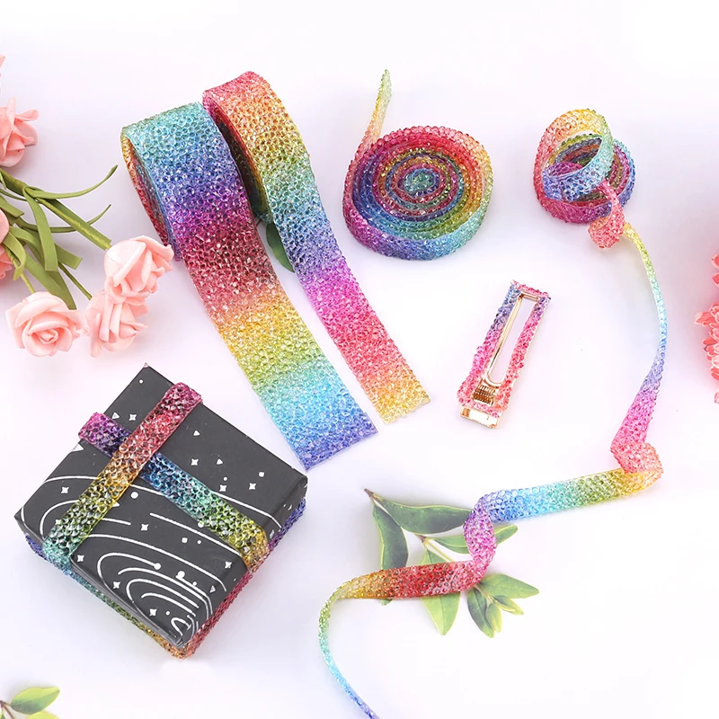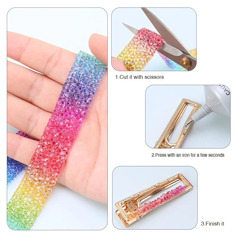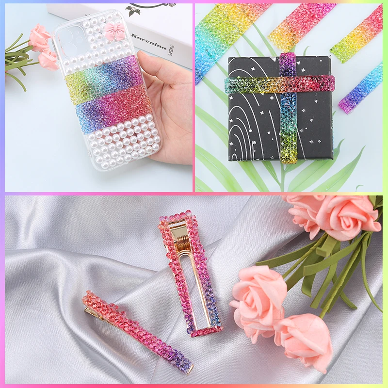 QIAO Радужная лента из стразов, отделка горячей фиксации, стразы, кристальная отделка, швейная лента, сделай сам, стразы для украшения, аксессуары для одежды