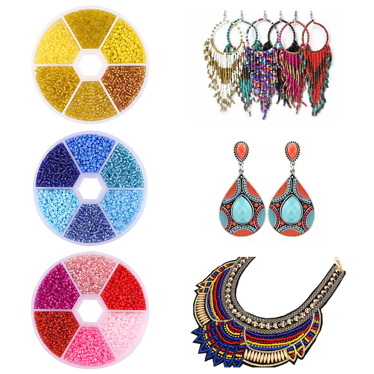 Стеклянные бусины россыпью 6 цветов в коробке, 3000-3900 шт., для и...