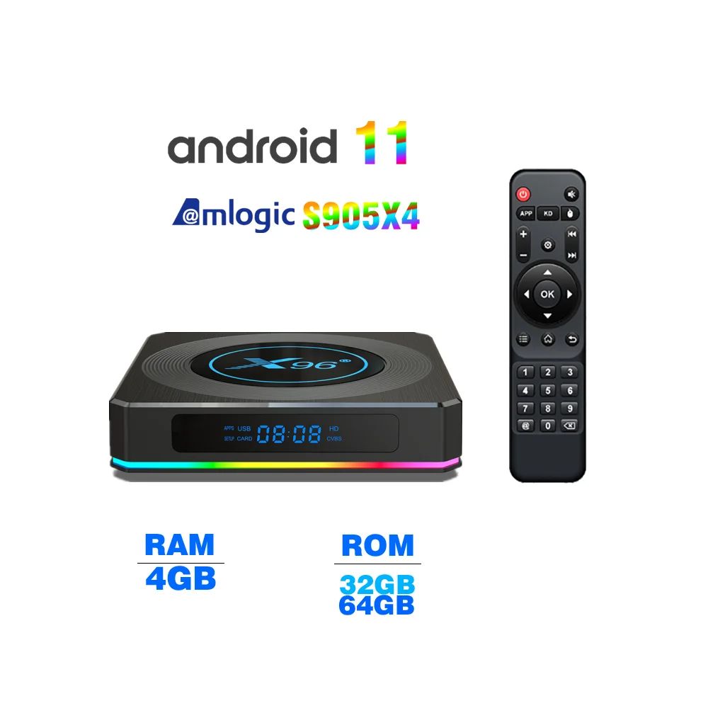 ТВ-приставка S905X4 X96 X4 с RGB-подсветкой, 4 + 64 ГБ, Wi-Fi