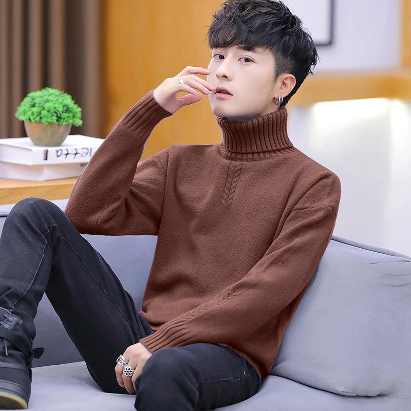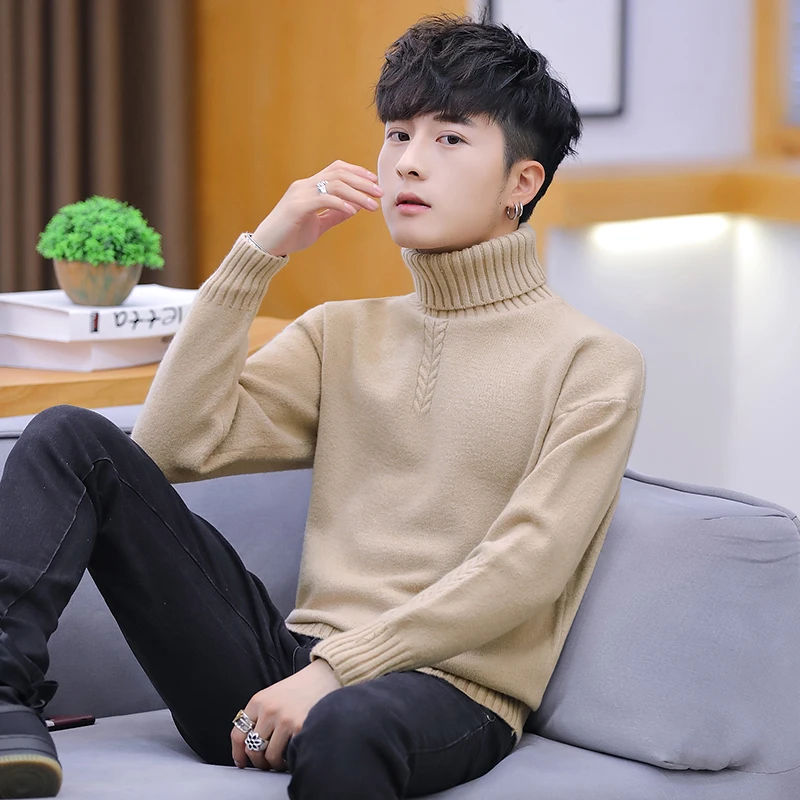 Мужской свитер с высоким воротом, Новинка весна-осень 2021, пуловер для отдыха, мужской вязаный свитер в Корейском стиле, мужской роскошный пуловер для мужчин