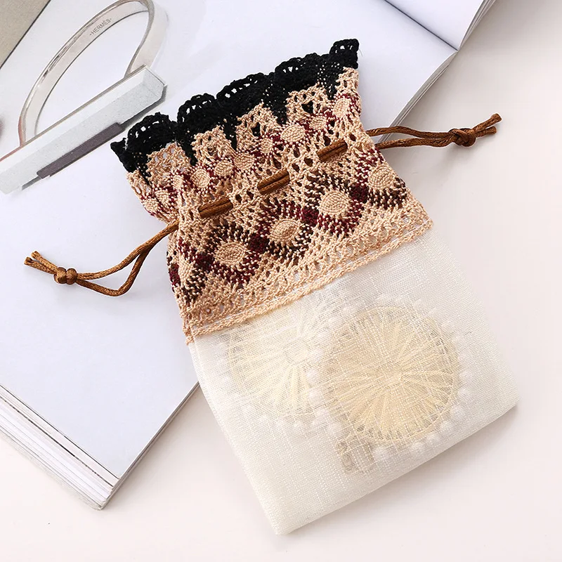 6 шт., 10x1, 4 см, кружевная кофейная кружевная сумка с волнистыми нитями, шнурок, сумка для ювелирных изделий, упаковка, Подарочный пакет, свадебные сумочки для сувениров, Женская