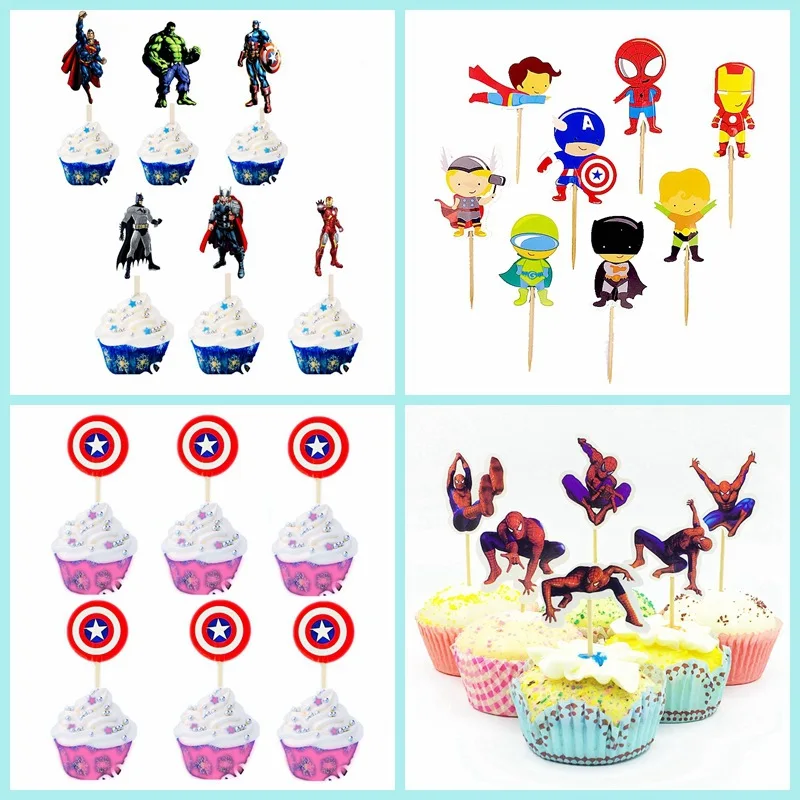 24 шт. топперы для кексов Marvel из Звездных Войн на день рождения, Мультяшные диснеевские игрушки Холодное сердце