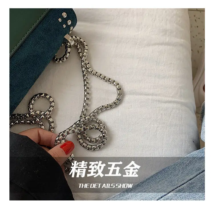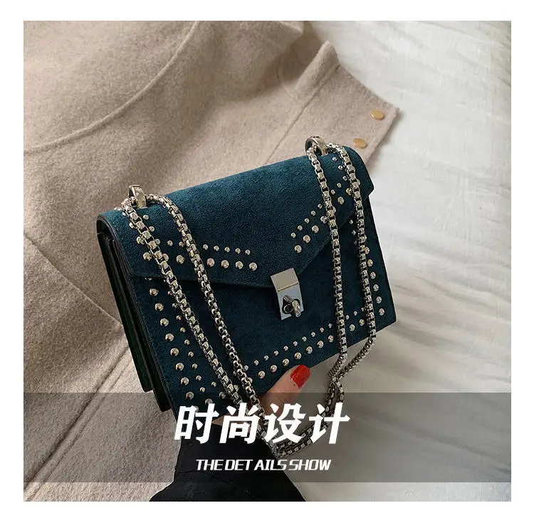 Женская сумка, новинка 2021, сумка через плечо с матовой цепочкой и заклепками, популярная маленькая квадратная сумка-мессенджер в стиле ретро