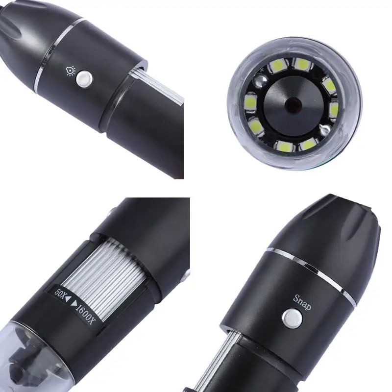 Цифровой микроскоп, портативный электронный микроскоп с разъемом USB Type-c и кронштейном на 8 светодиодов, 1600x3 в 1