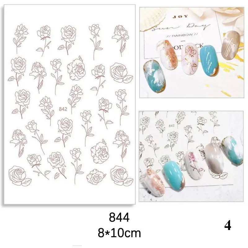 Золотистыесеребристые металлические полоски, 3D наклейка для ногтей...