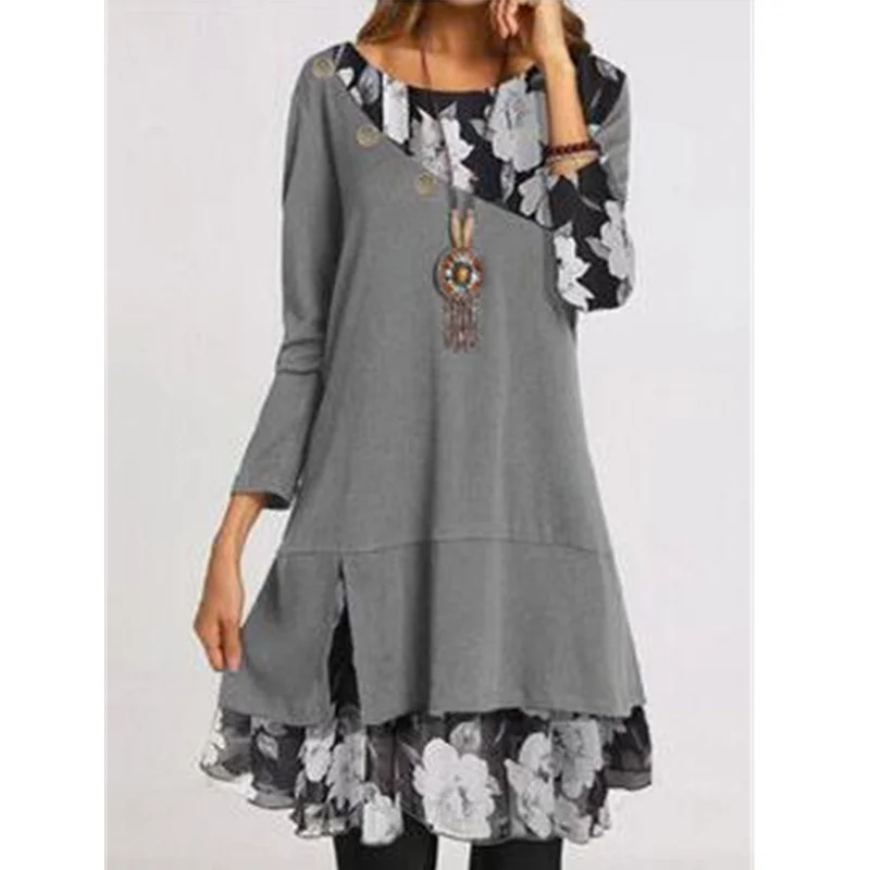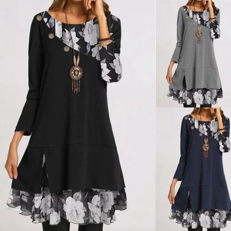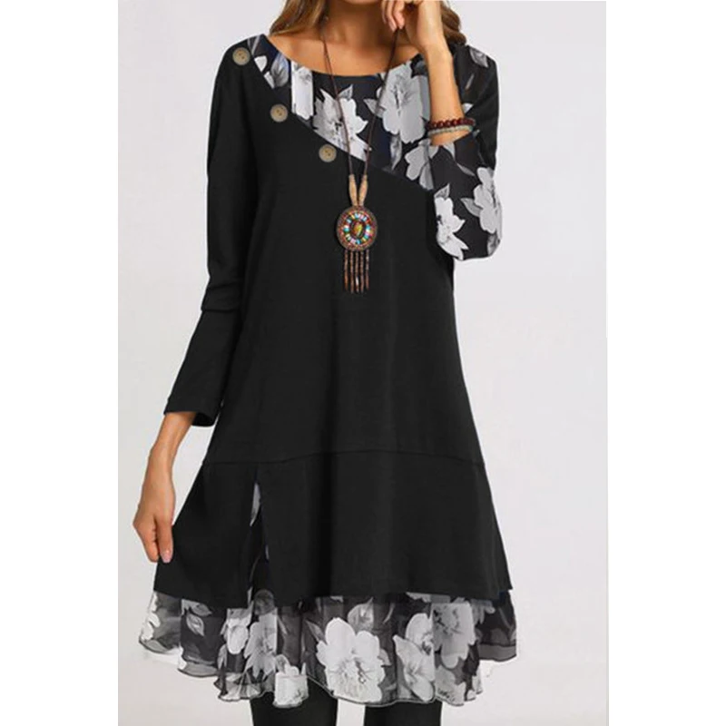 Женское шифоновое платье в стиле пэчворк, весенне-осеннее модное платье с длинным рукавом, свободные женские повседневные платья, одежда