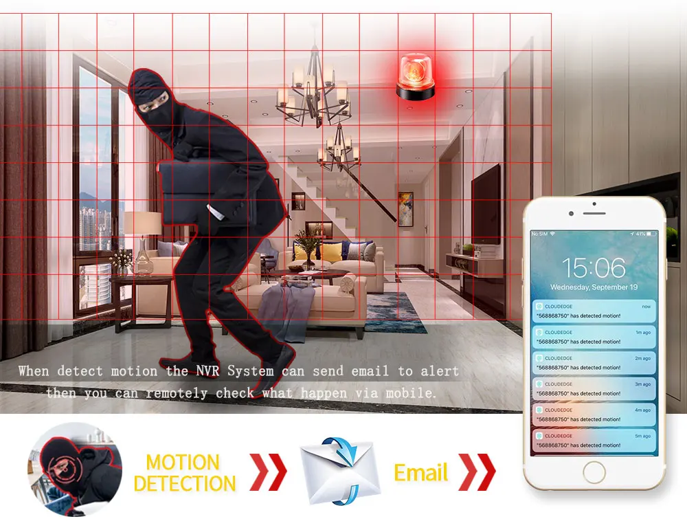 Можно настроить область, которую вы хотите контролировать, когда она срабатывает, она отправит сообщение на вашу электронную почту, вы можете получить информацию из первых рук, независимо от того, когда и где вы находитесь.
