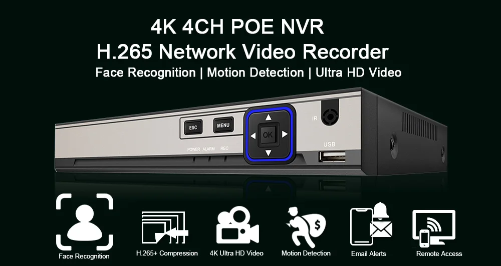 4CH POE NVR ResolutionH.265 4CH 4K NVR