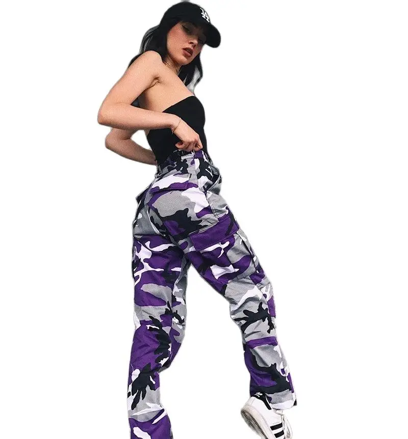 Женские камуфляжные брюки с высокой талией; Модные брюки; Брюки до ...