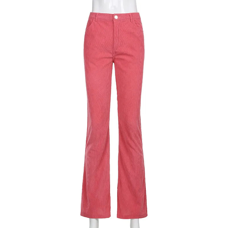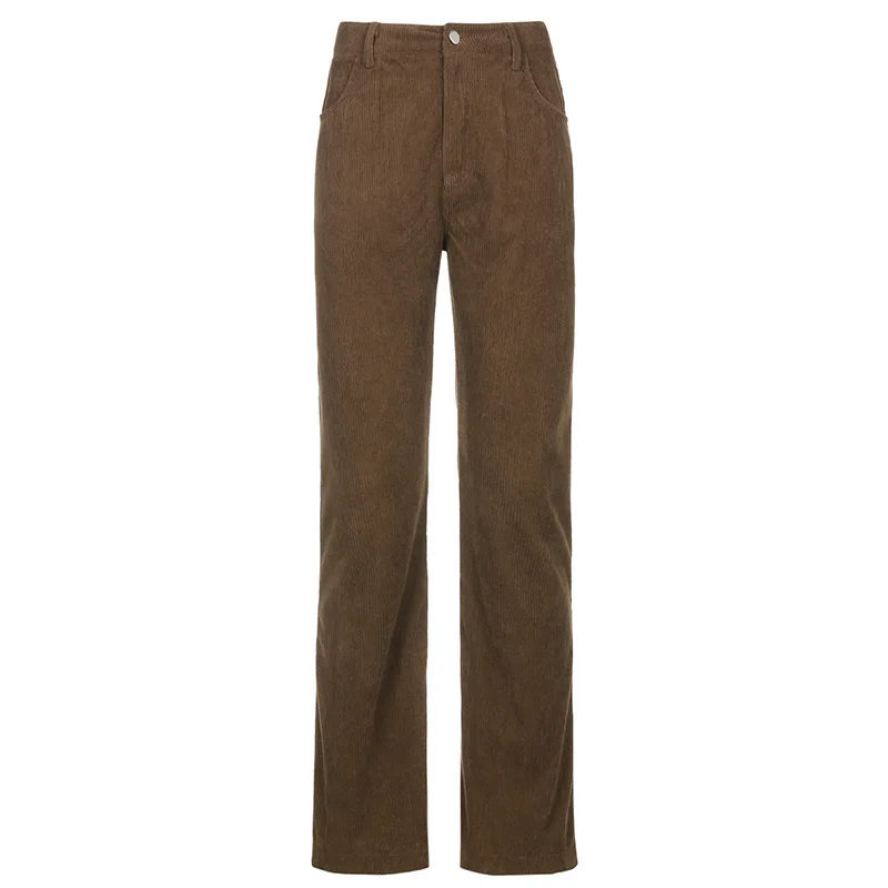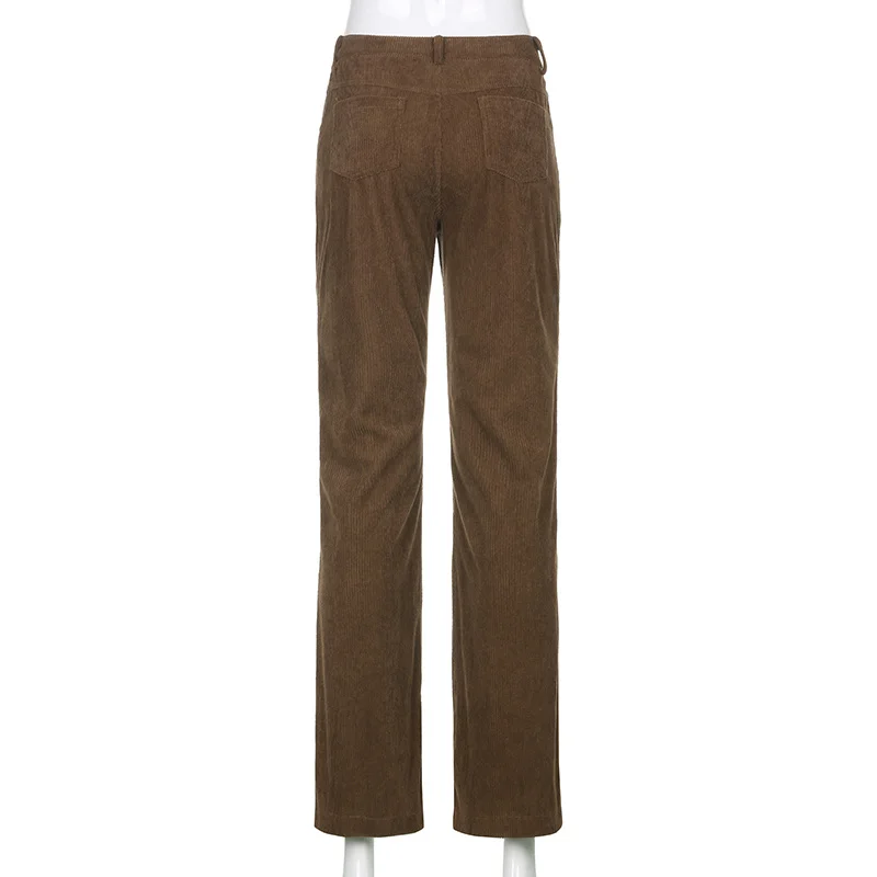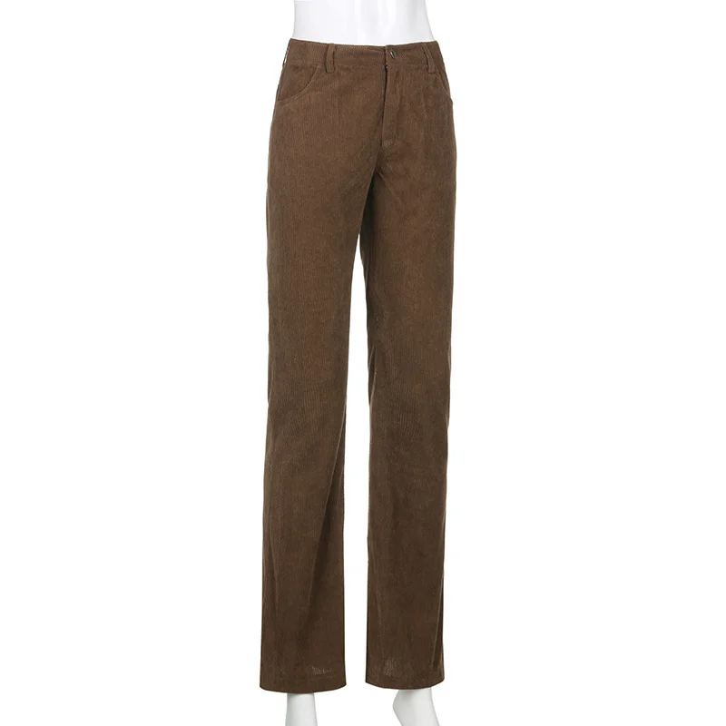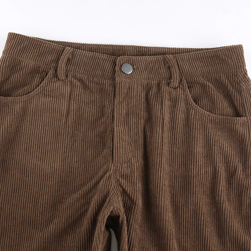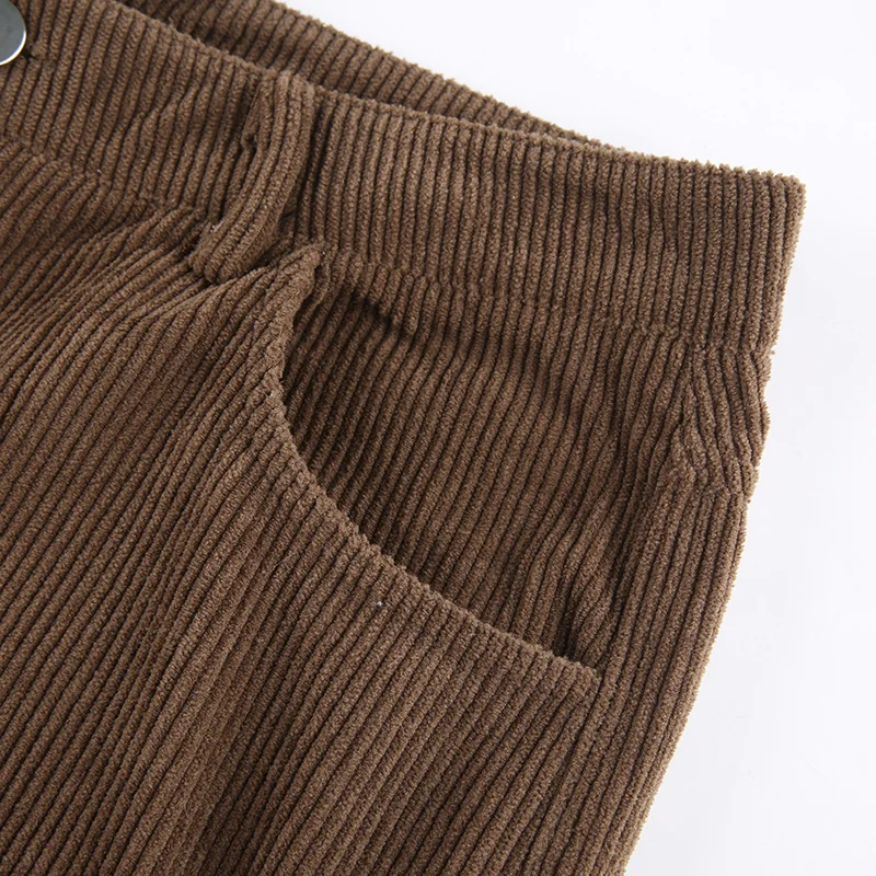 Новинка 2021, Осенние повседневные вельветовые коричневые длинные брюки, женские узкие брюки-Капри со средней талией, модные тонкие спортивные брюки с карманами в стиле 90-х