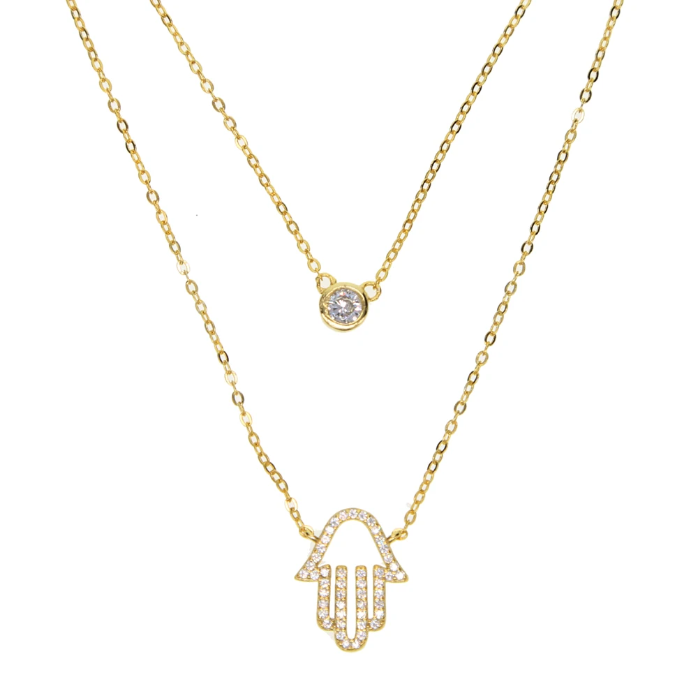 925 пробы серебряная с кубическим цирконием ручная подвеска-Хамса двухслойная цепочка чокер ожерелье золотого цвета с серебряным покрытием