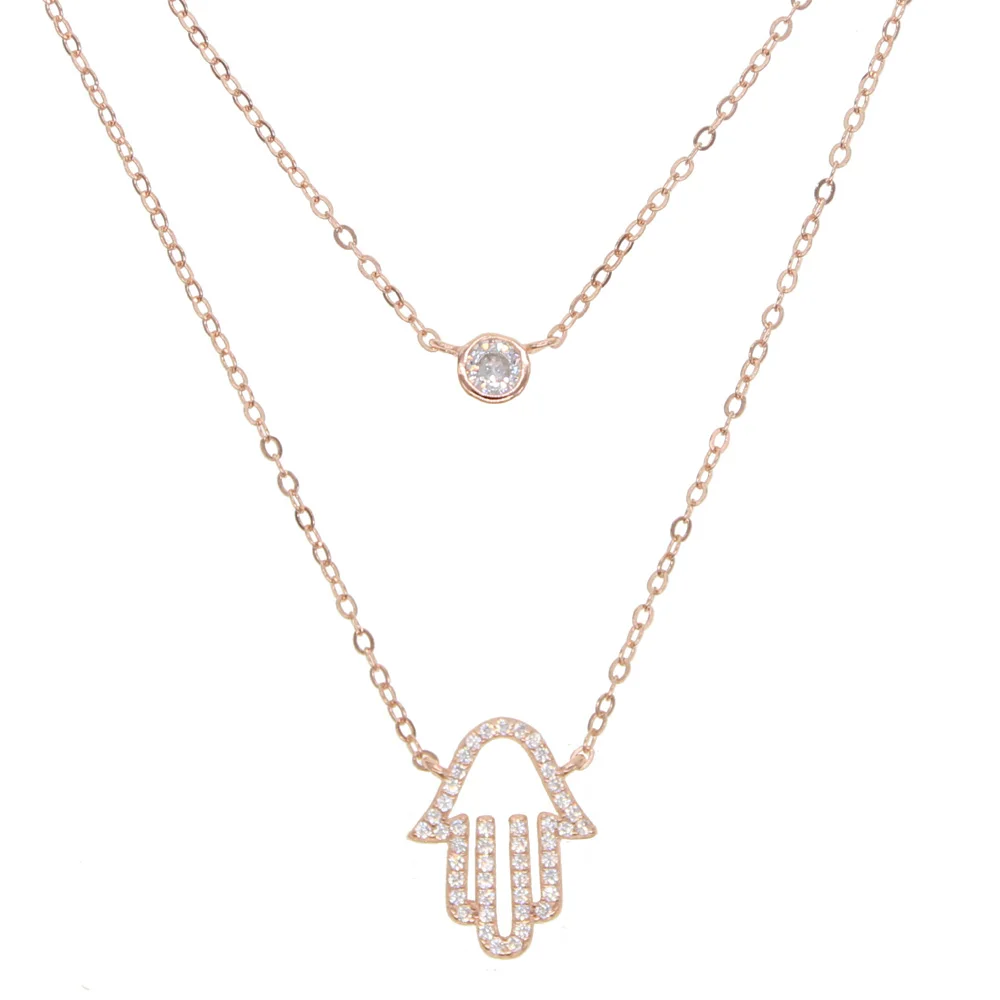 Ожерелье с подвеской в виде хамсы от сглаза, Двухслойное, из серебр...