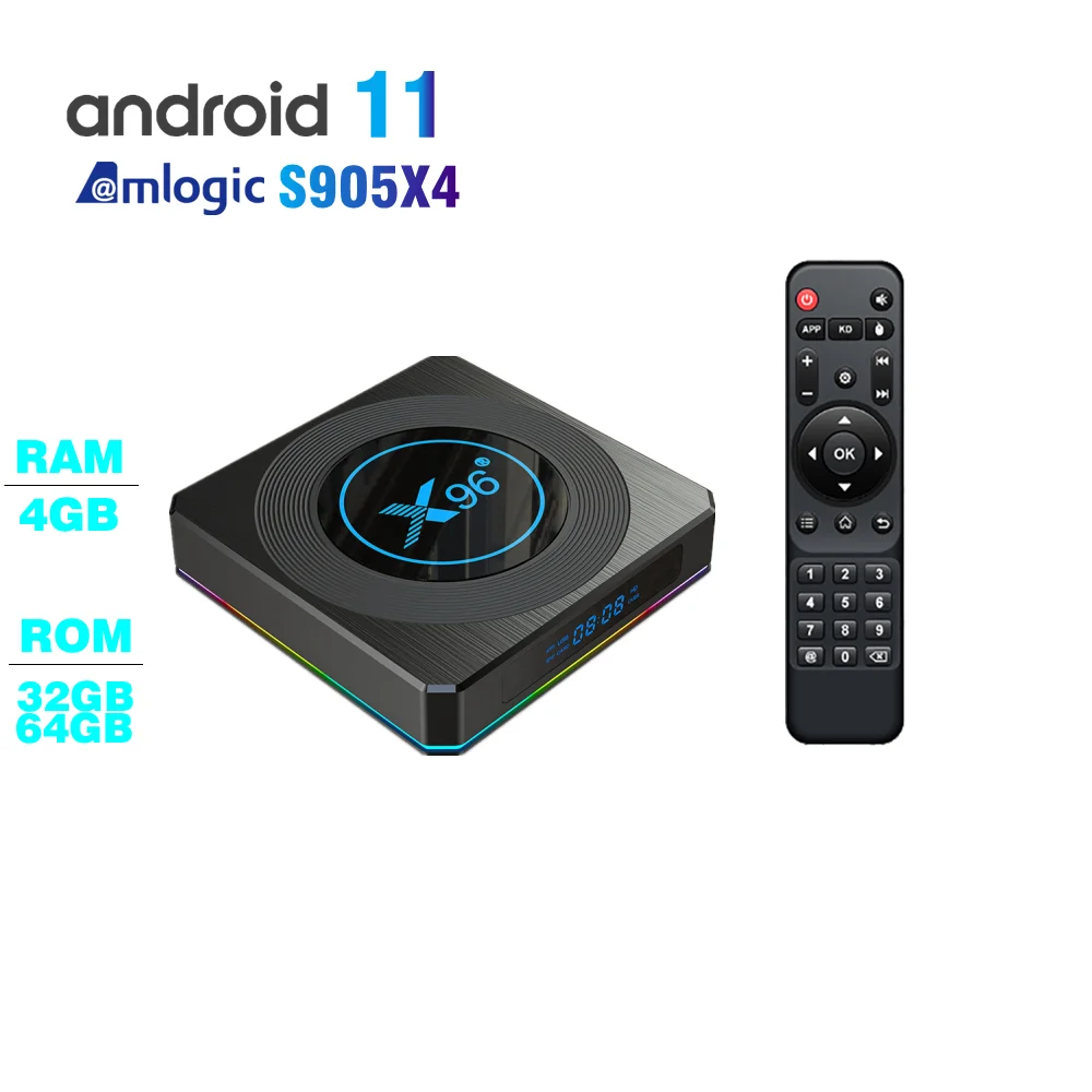 ТВ-приставка на Android 11 Amlogic S905X4, самый умный декодирующий Двойной Wi-Fi 2,4 ГГцтелефон X96 X4, медиаплеер AV1