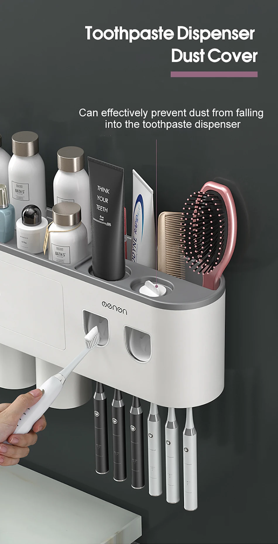 Магнитный поглощающий инвертированный держатель для зубных щеток, двойной автоматический дозатор для зубной пасты, стеллаж для хранения, аксессуары для ванной комнаты