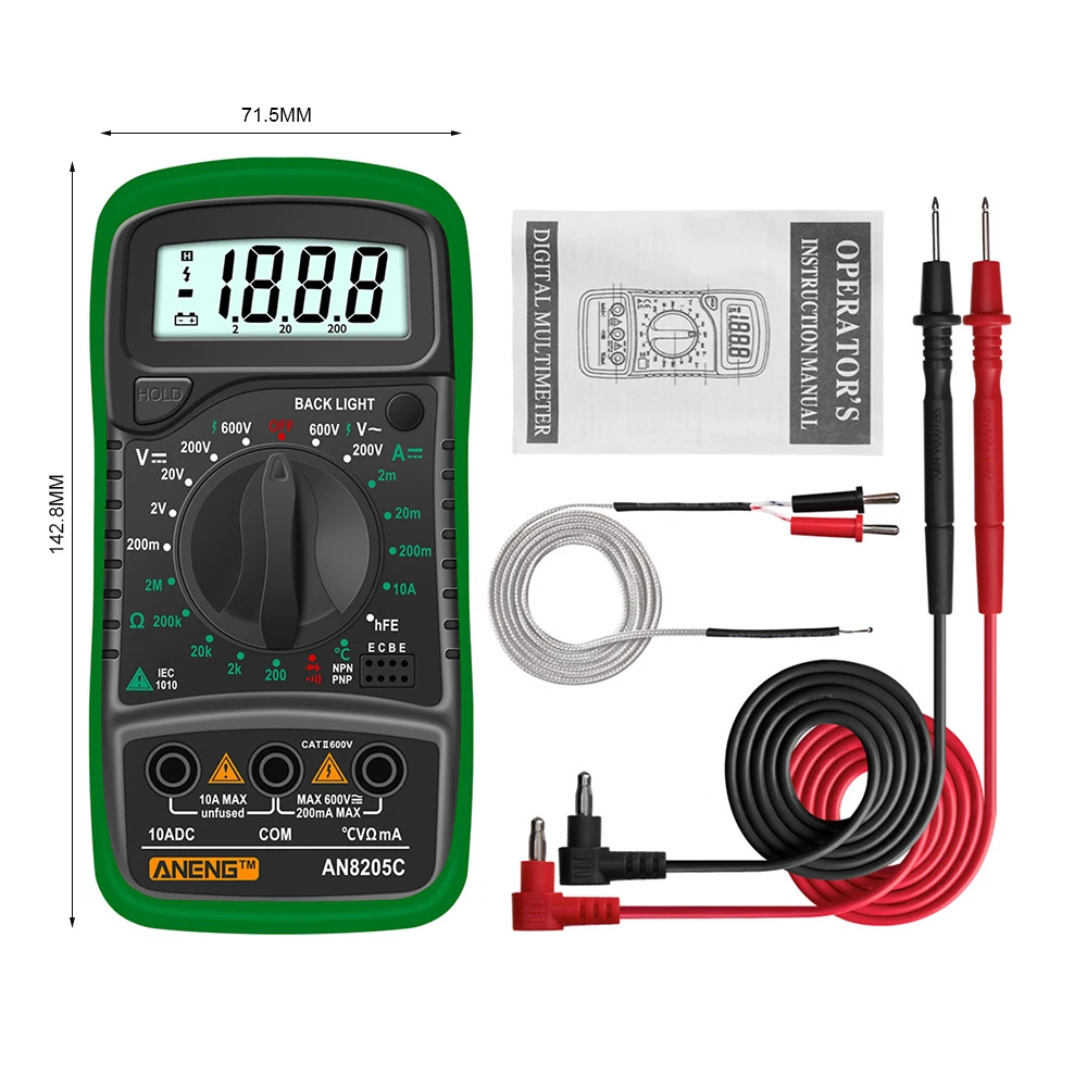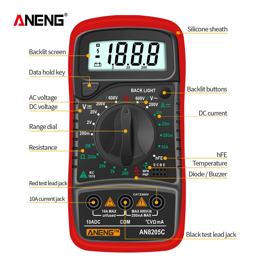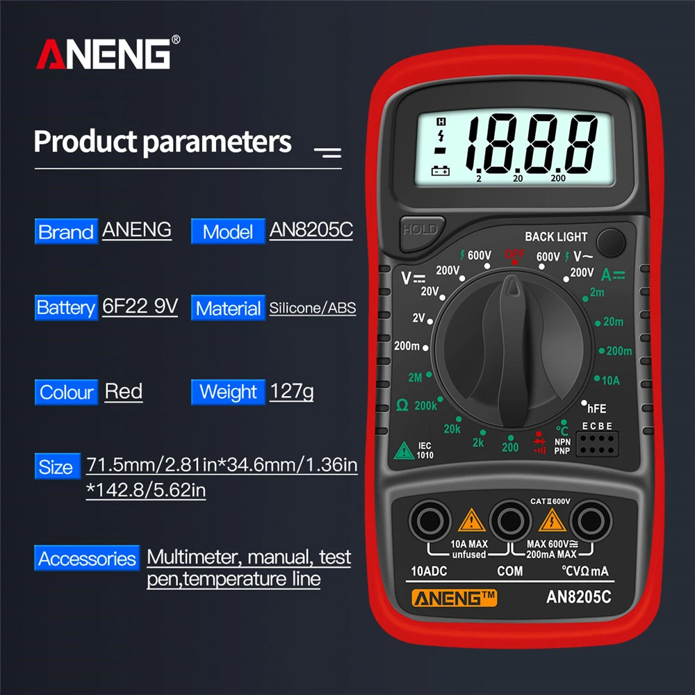 ANENG AN8205C Цифровой мультиметр 1999 портативный высокоточный Амперметр Вольт Ом тестер измеритель с термопарой ЖК подсветкой