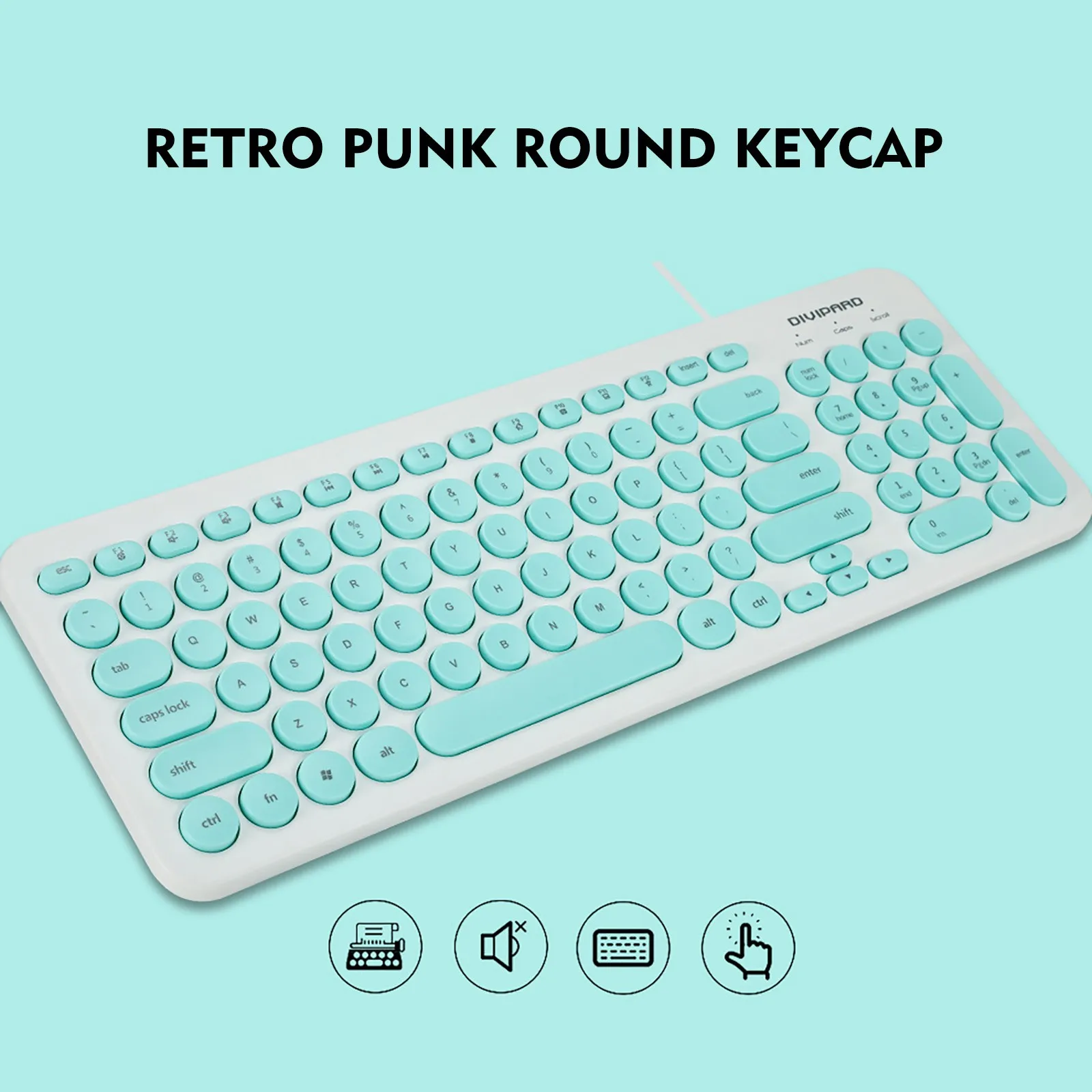 Проводная Механическая клавиатура D520 в стиле ретро, клавиатура с розовыми и круглыми клавишами в стиле панк, 96 клавиш, для ноутбука, с английской раскладкой