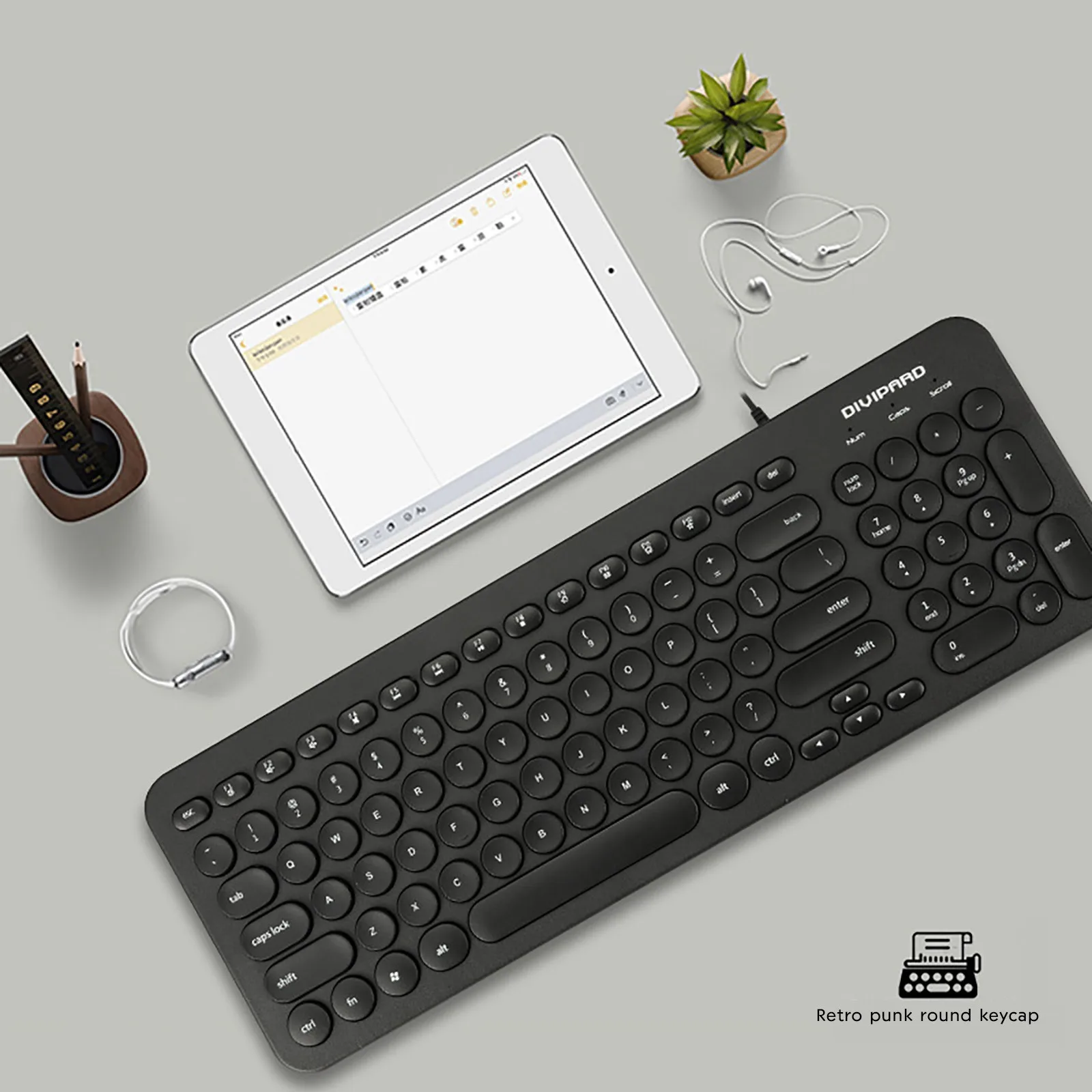 Император Леопард D520 стильная и клавиатура в стиле ретро-Эта клавиатура сочетает в себе Ретро стиль и современный дизайн, с гладкой технологией края и милыми белыми круглыми колпачками, что обеспечивает комфортный и плавный ввод текста; это лучший выбор для офисных или домашних клавиатур.