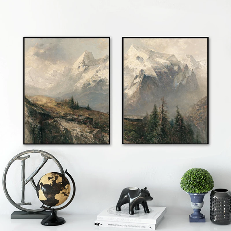 Деревенский Горный пейзаж винтажные художественные принты антикварные картины на холсте плакат галерея настенные картины для гостиной домашний декор