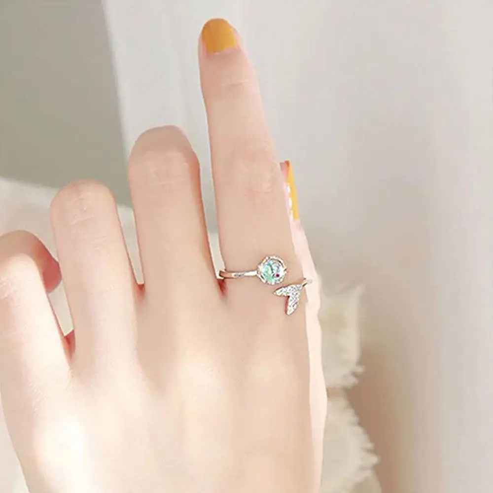 Новинка 2021 серебряный цвет регулируемые кристаллы хвост русалки кольца модные открытые кольца ювелирные изделия подарок для женщин