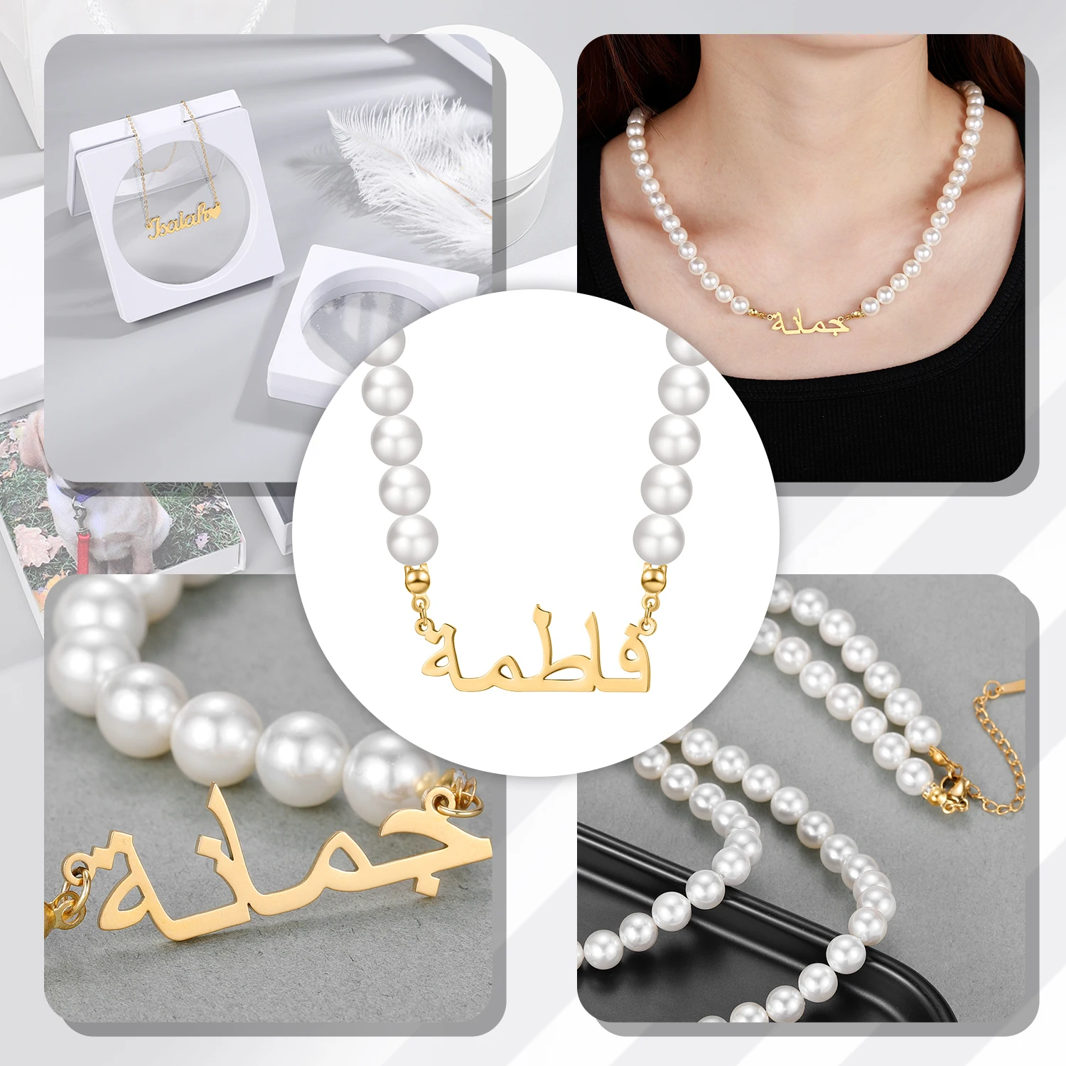 Индивидуальное ожерелье с арабским именем на заказ для женщин, жемчужная цепочка, мусульманская Свадебная цепочка, Аллах, чокер со священным семейным подарком