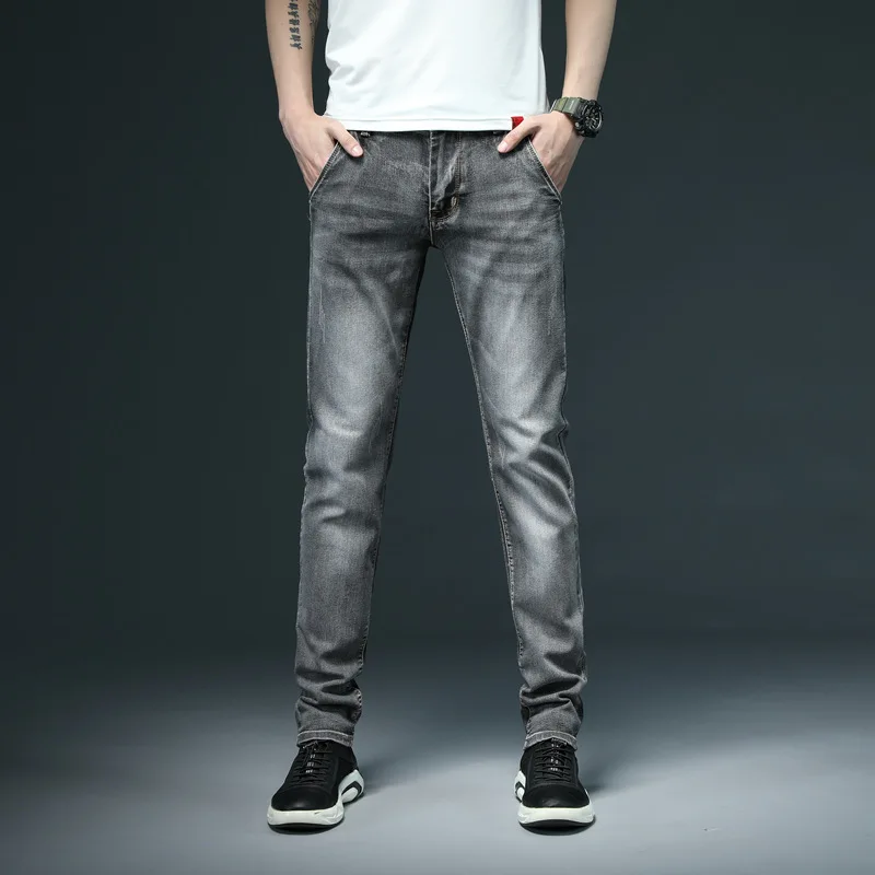 Мужские джинсы, деловые повседневные узкие прямые джинсы, Стрейчевы...