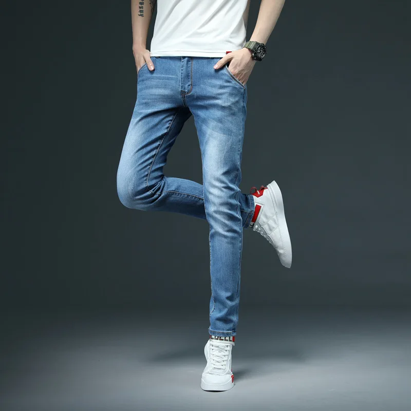 Джинсы мужские узкие, модные брюки из денима Slim Fit, повседневные...