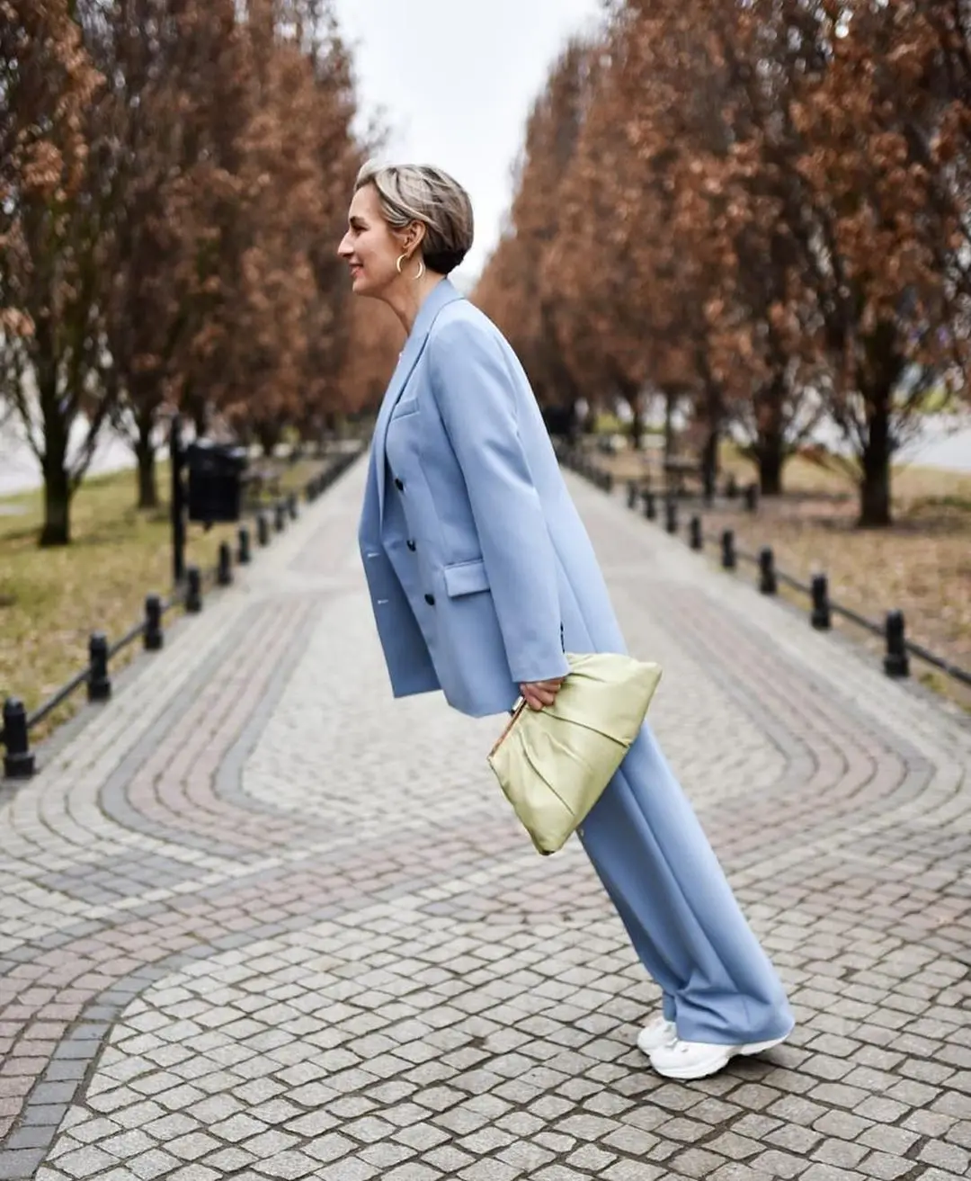 Женский двубортный Блейзер на пуговицах, облегающий Повседневный блейзер с широкими штанинами, синего цвета, 2 предмета