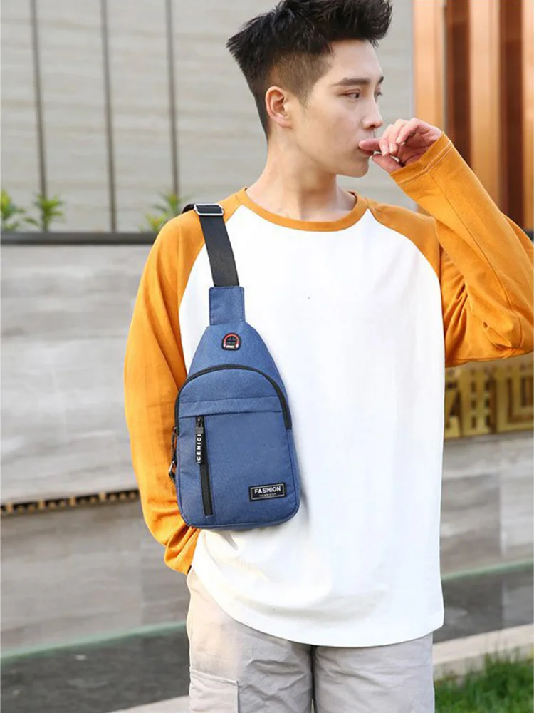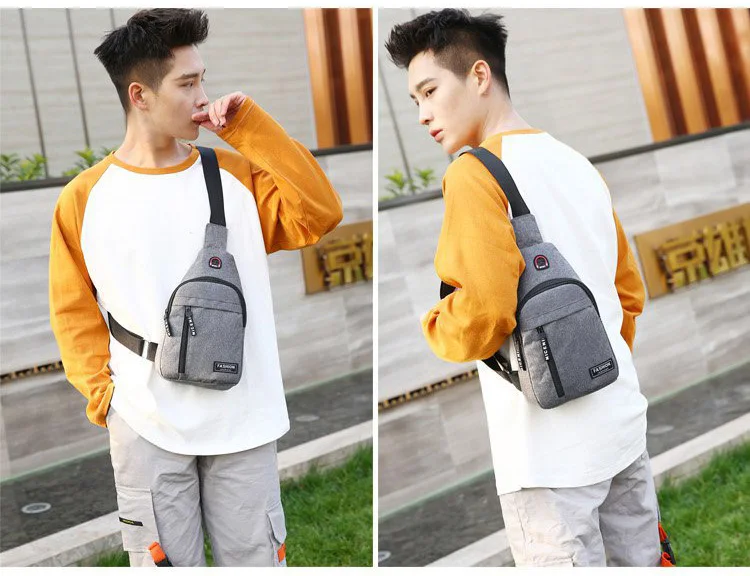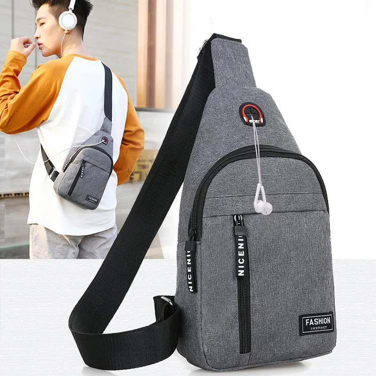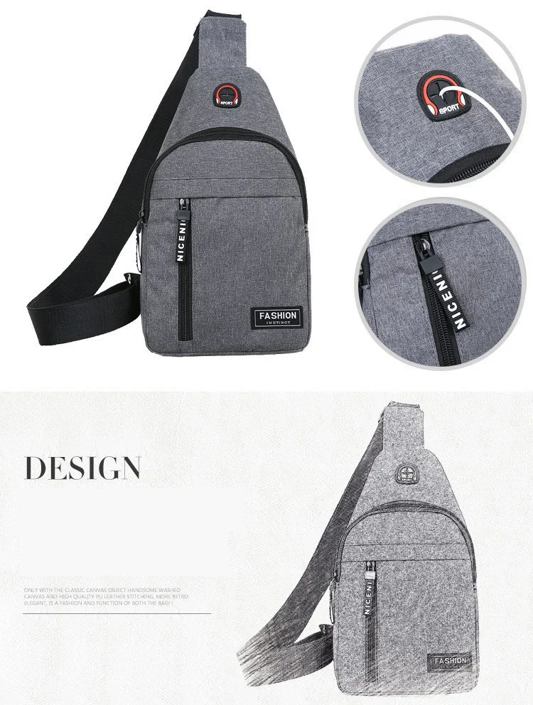 Маленькие холщовые сумки через плечо с разъемом для наушников, простая мини сумка-слинг, уличная спортивная нагрудная сумка через плечо, Повседневная сумка-мессенджер для пикника для мужчин