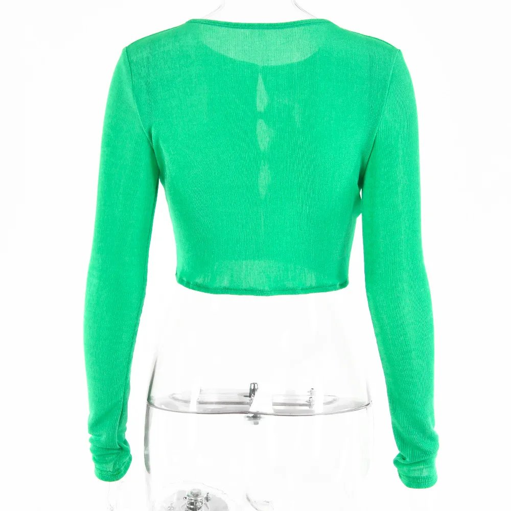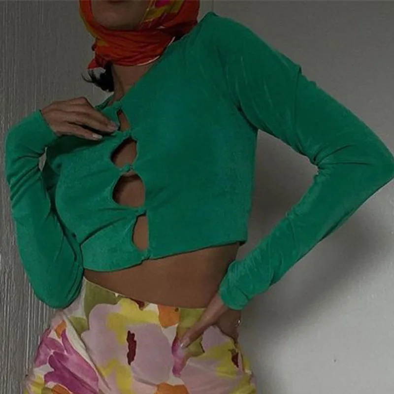 Женская футболка на пуговицах, летние укороченные топы с длинным рукавом, новые футболки 2021