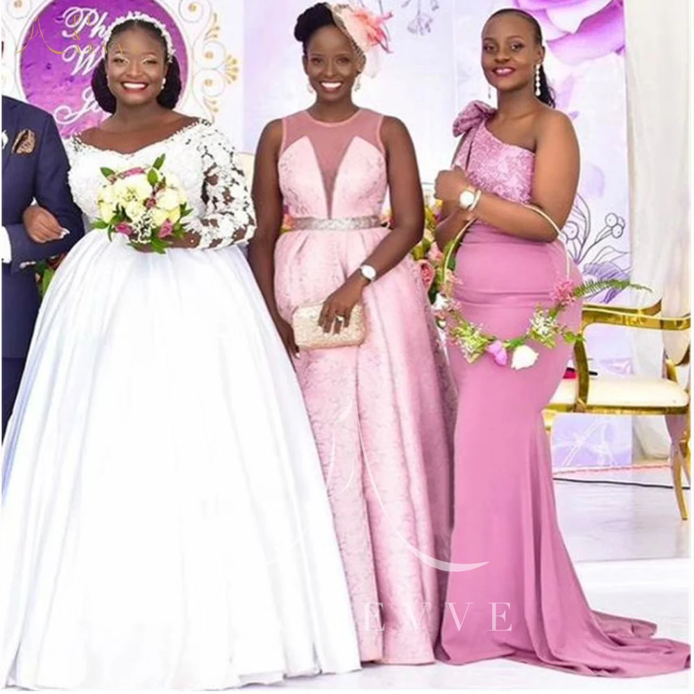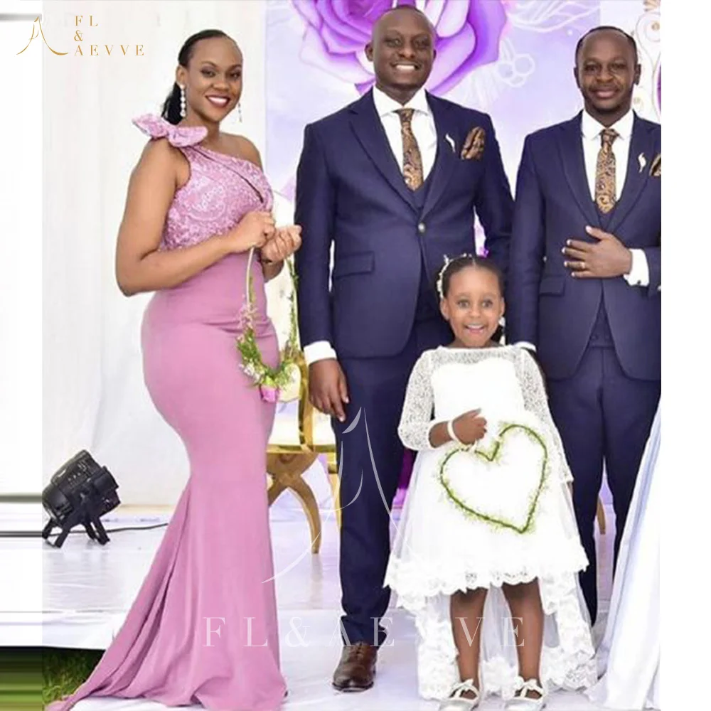 Модные розовые кружевные платья подружки невесты с бантом на одно плечо, африканские свадебные вечерние платья размера плюс, платье подружки невесты