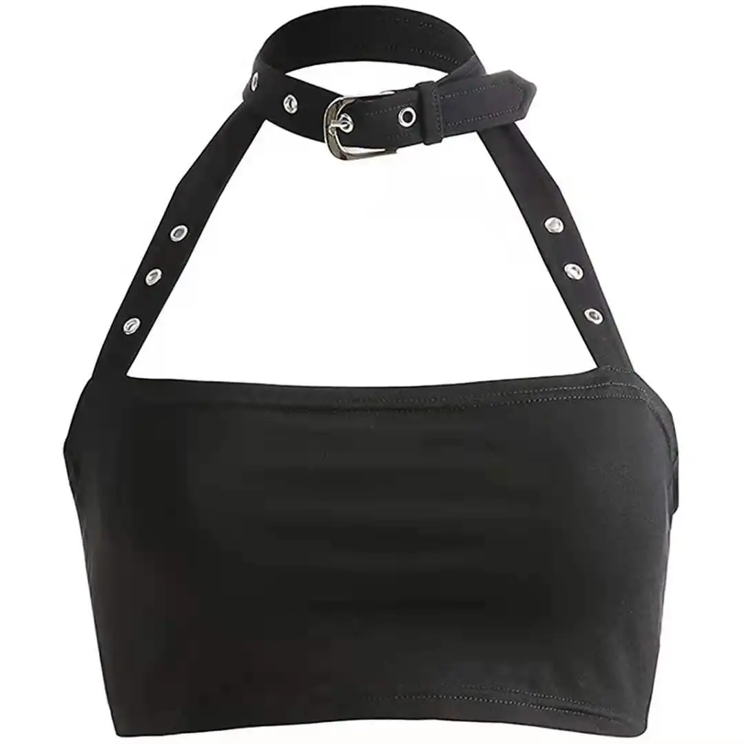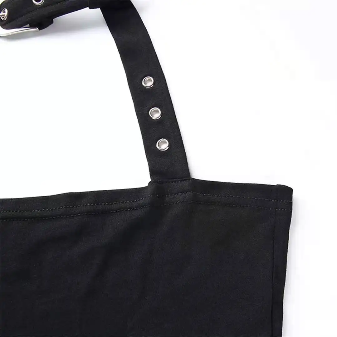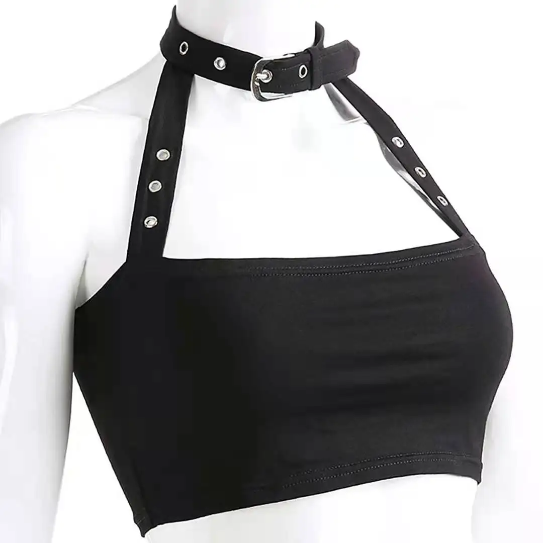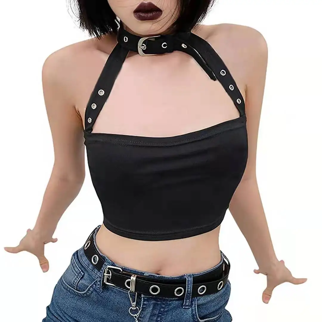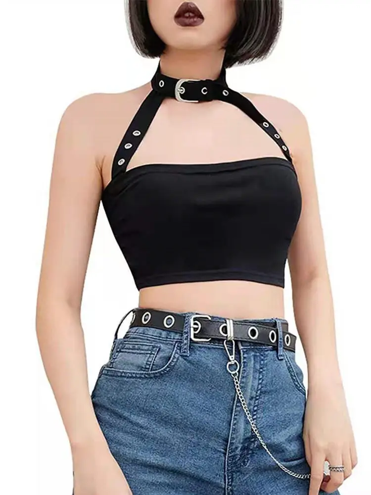 Женский кроп-топ без рукавов Goth Girl, повседневный пикантный топ с лямкой на шее, уличная одежда, топ с открытыми плечами