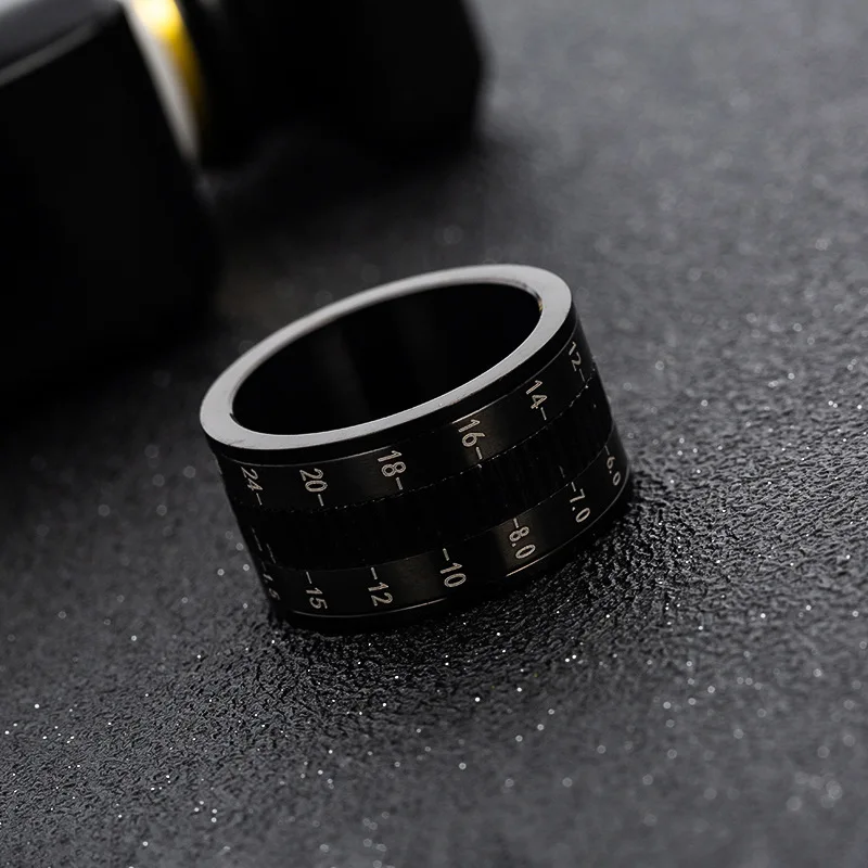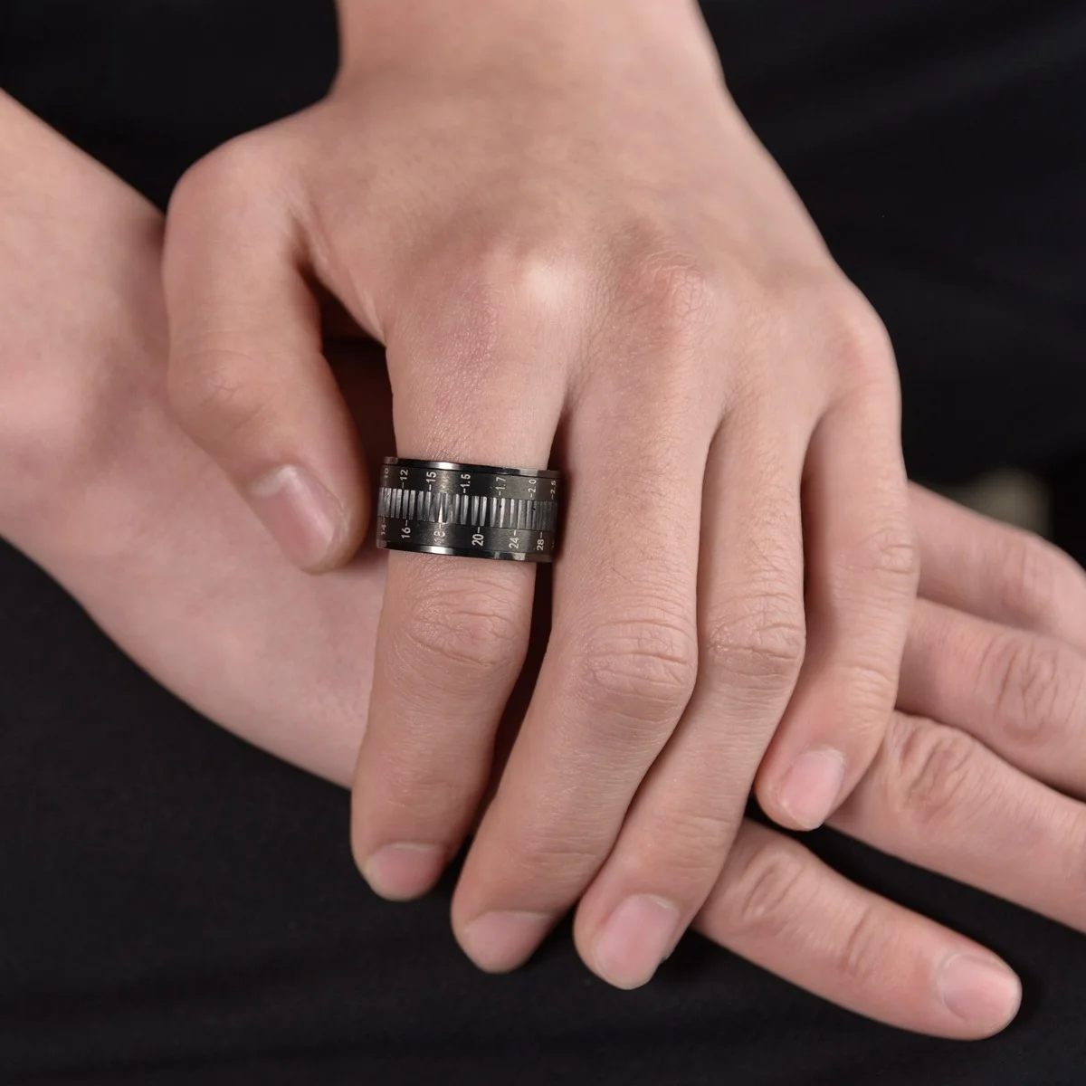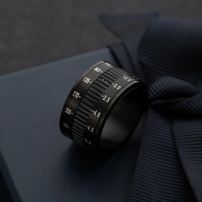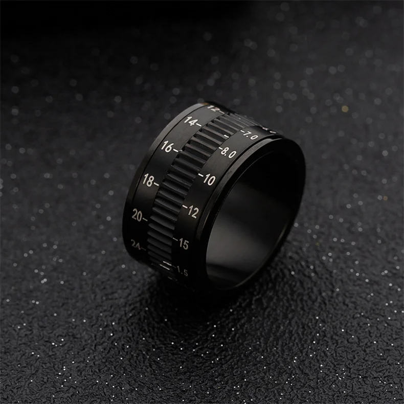 Мужское кольцо из титановой стали с вращающимся объективом 12 мм