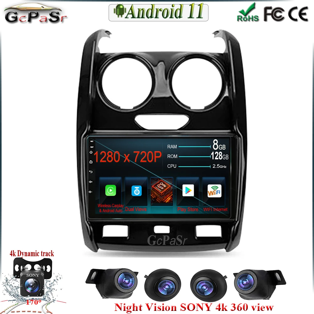 Автомобильная стерео-система на Android 11 с двумя объективами для ...