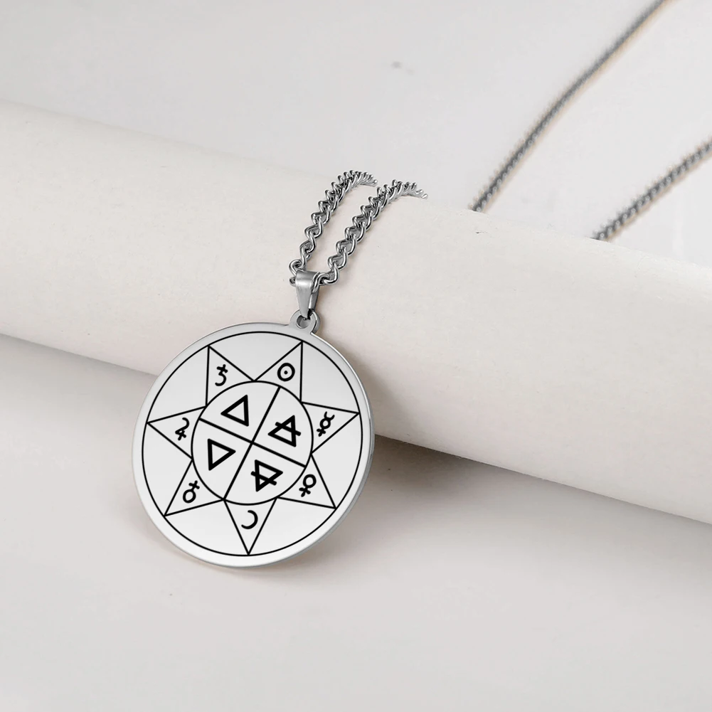 Винтажное ожерелье с подвеской в виде семи звезд алхимии, Мужская гексаграмма Соломона талисмана, ювелирные изделия из нержавеющей стали