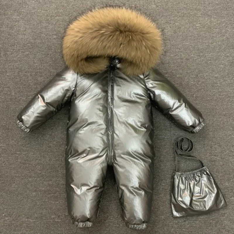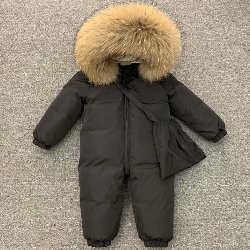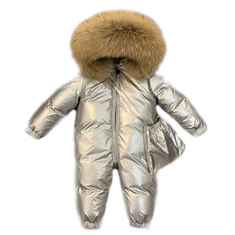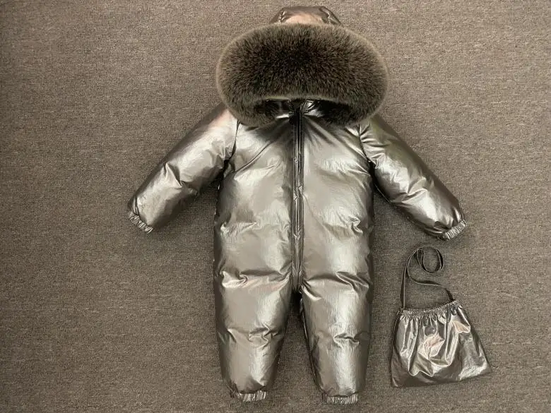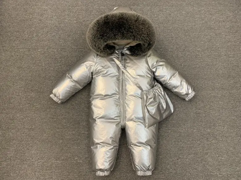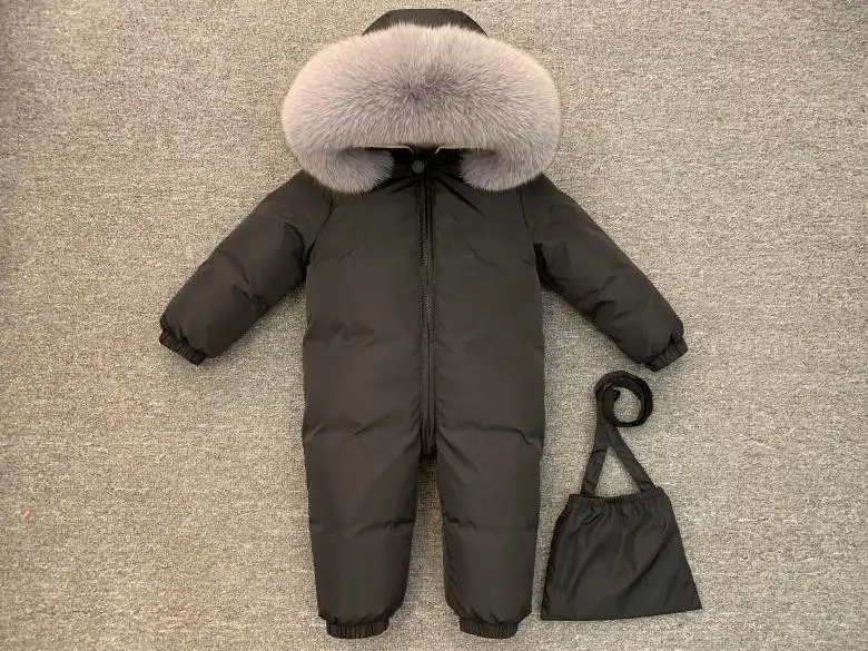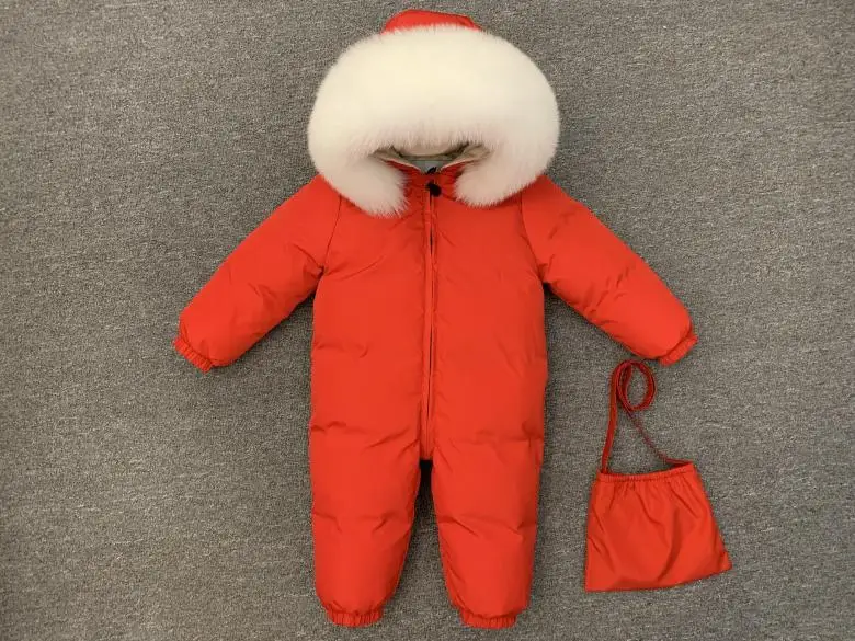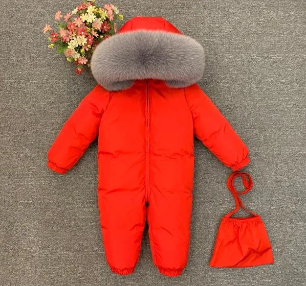 Новинка, Комбинезоны для маленьких мальчиков и девочек, пуховой комбинезон, куртка с капюшоном из натурального меха, Детский комбинезон для малышей, зимняя одежда для России
