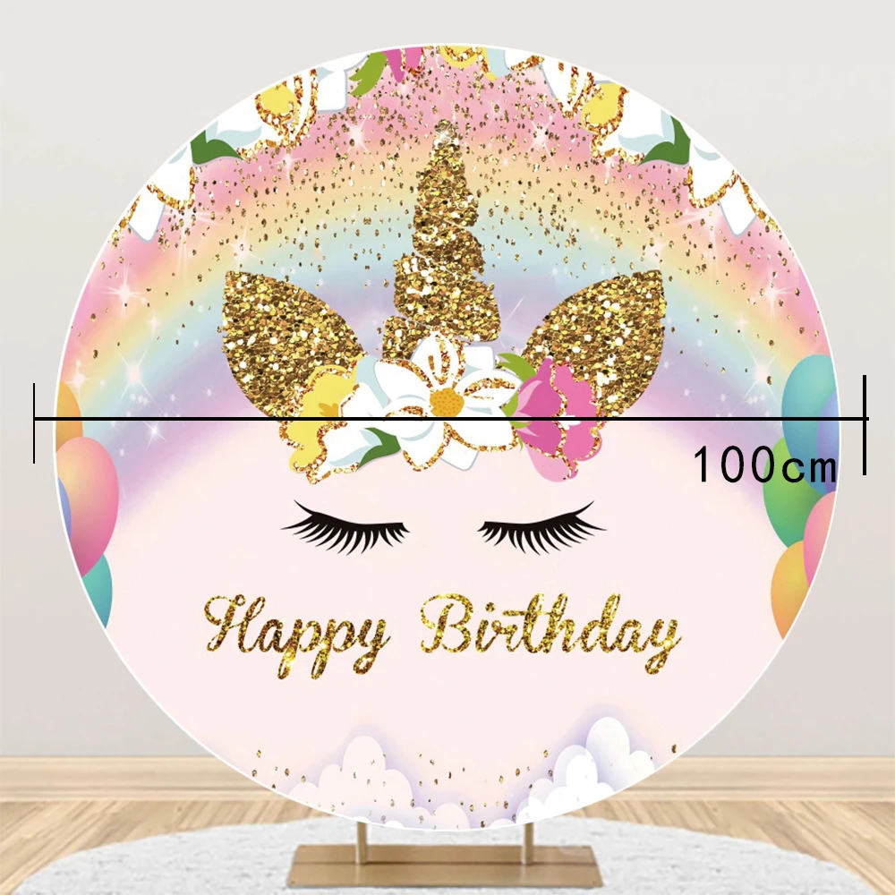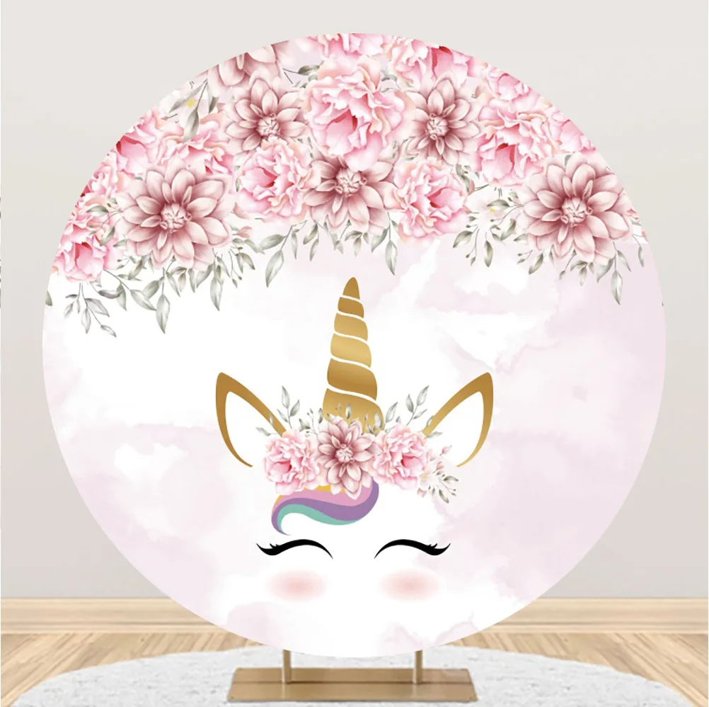 Новый Круглый фон с единорогом, тканевый цветок, украшение на день рождения, Круглый фон, ткань, единорог, украшение для темативечерние